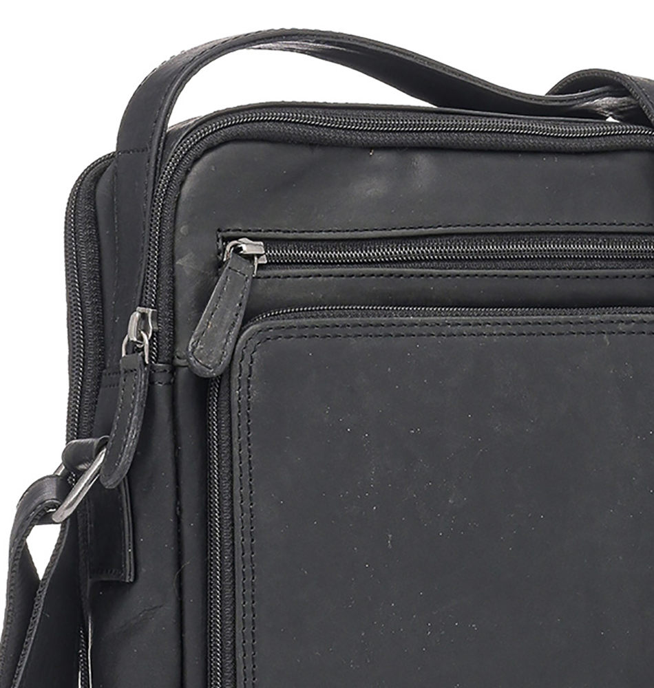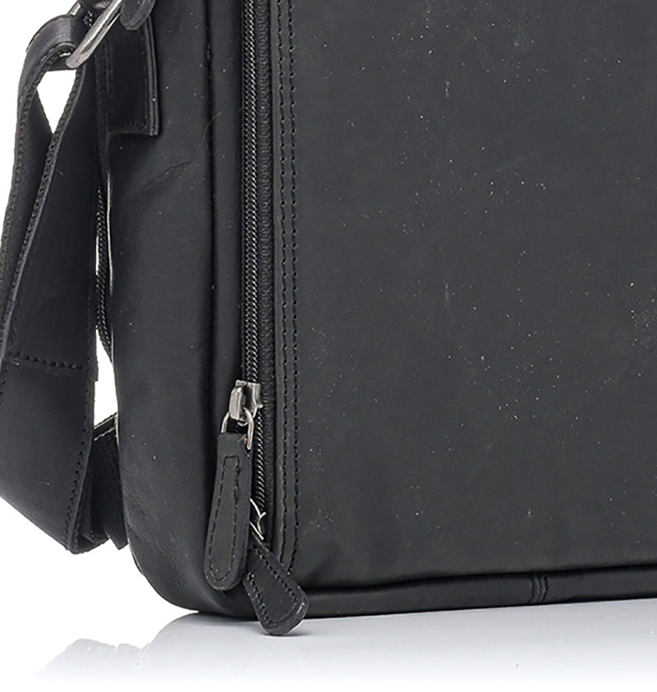 Ανδρικό Δερμάτινο τσαντάκι ώμου χιαστί RCM Leather Crossover με πολλές θέσεις H14 Μαύρο. New collection
