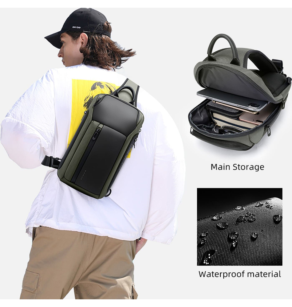 Ανδρικό μικρό σακίδιο πλάτης - στήθους χιαστί crossbody BANGE Sling Crossover Bag 7566-KHAKI Χακί