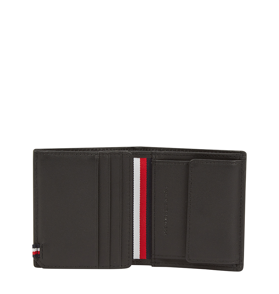 Ανδρικό Δερμάτινο πορτοφόλι TOMMY HILFIGER TH Foundation Trifold  AM0AM13510-BDS Μαύρο. Αυτό το πολυτελές δερμάτινο πορτοφόλι σας επιτρέπει να μεταφέρετε επιπλέον κάρτες και μετρητά χάρη στο πτυσσόμενο διαμέρισμα και την κλασική τσέπη για κέρματα.