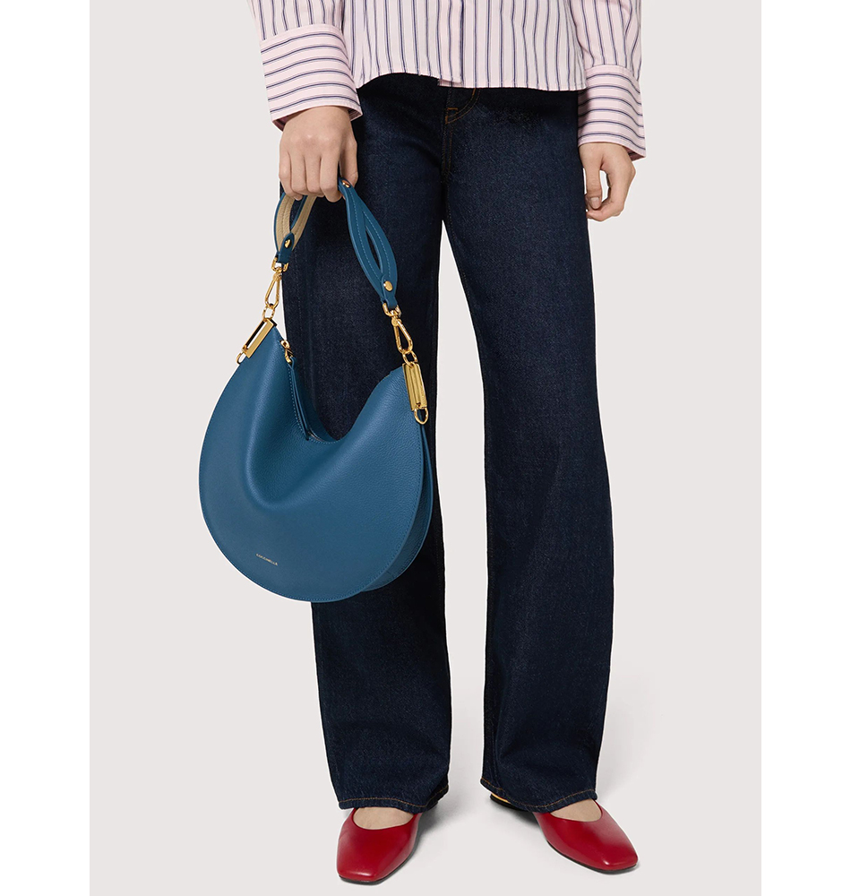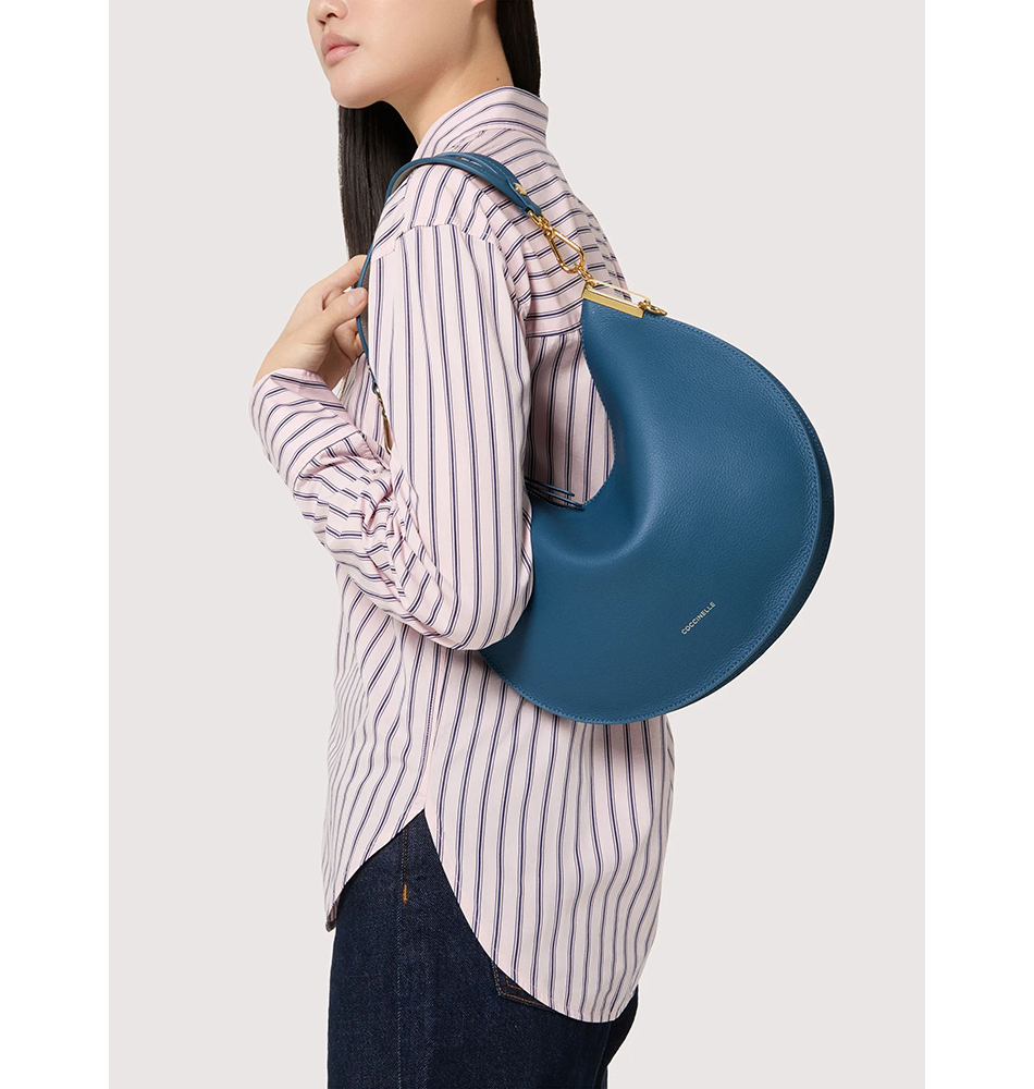 Η στρόγγυλη σιλουέτας της, που αντικατοπτρίζεται και στο όνομά της, είναι το σήμα κατατεθέν της σειράς Coccinelle Sunup. Η λαβή είναι το διακριτικό στοιχείο της σειράς, βασισμένη στις ίδιες θηλυκές καμπύλες που δημιουργούν μια ελικοειδή ύφανση, δίνοντάς της μια πινελιά πρωτοτυπίας. Το δέρμα δύο όψεων ενισχύει την απαλότητα και την ελαφρότητα της τσάντας, χάρη και στο εσωτερικό χωρίς επένδυση, προσθέτοντας μια πρωτότυπη πινελιά χάρη στο παιχνίδι των χρωματικών αντιθέσεων. Αυτό το μοντέλο είναι κατασκευασμένο με δέρμα που έχει υποστεί επεξεργασία με εξειδικευμένα μηχανήματα και στη συνέχεια έχει υποστεί αναδίπλωση για ένα εξαιρετικά απαλό φινίρισμα. Αυτός ο συγκεκριμένος τύπος δέρματος έχει φινίρισμα με χρωστικές ουσίες και στις δύο πλευρές για να δημιουργήσει ένα εφέ δύο όψεων. Είναι κατασκευασμένο από ένα ανθεκτικό υλικό, καθιστώντας το κατάλληλο για καθημερινή χρήση.