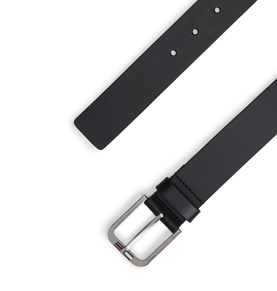 Ανδρική δερμάτινη ζώνη TOMMY HILFIGER Austin Signature Square Buckle3.5 AM0AM13686-BDS Μαύρο