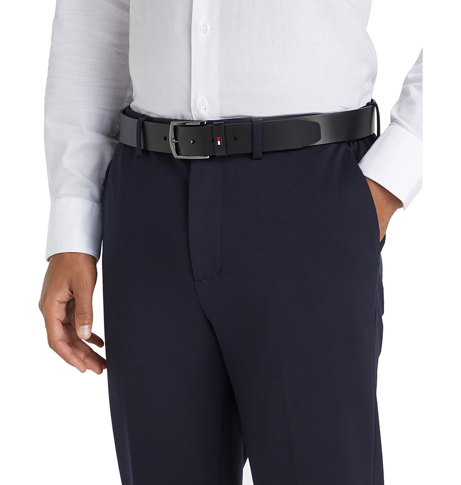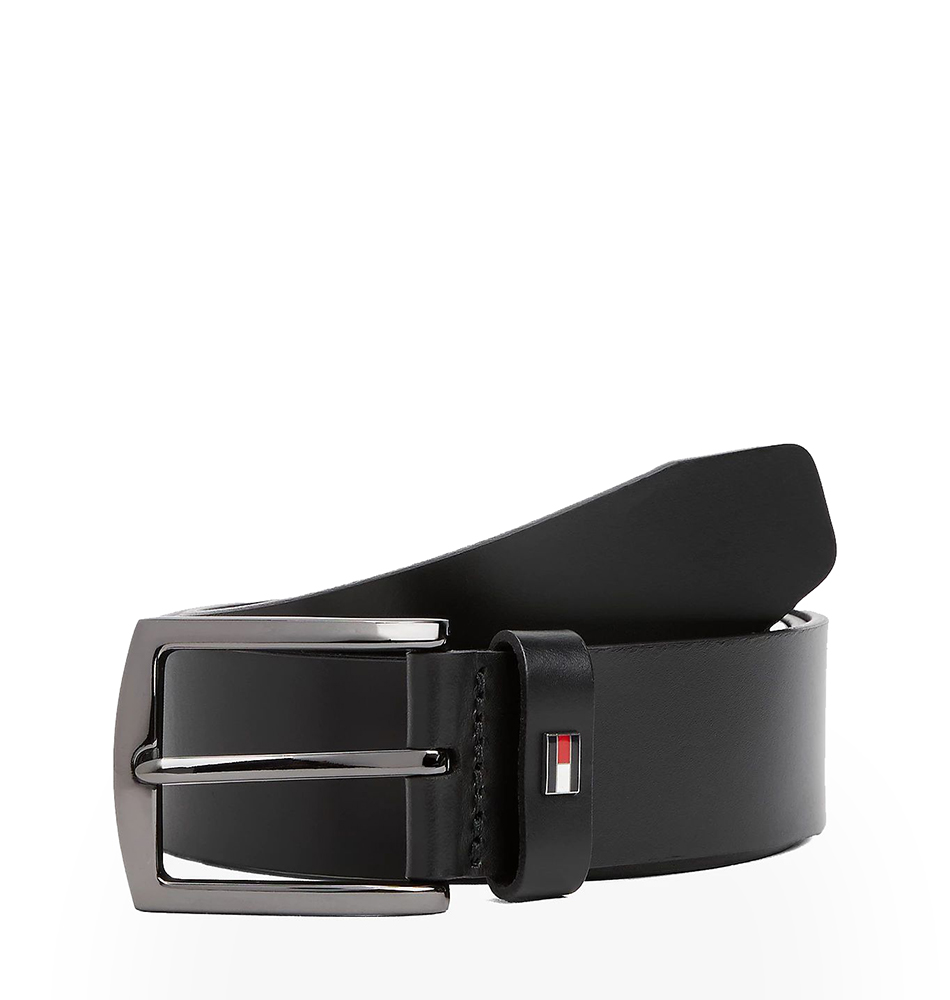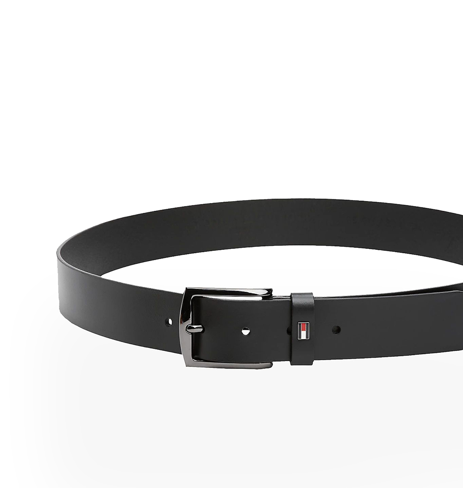 Ανδρική δερμάτινη ζώνη TOMMY HILFIGER Denton Enamel Flag 3.5 AM0AM13536-BDS Μαύρο