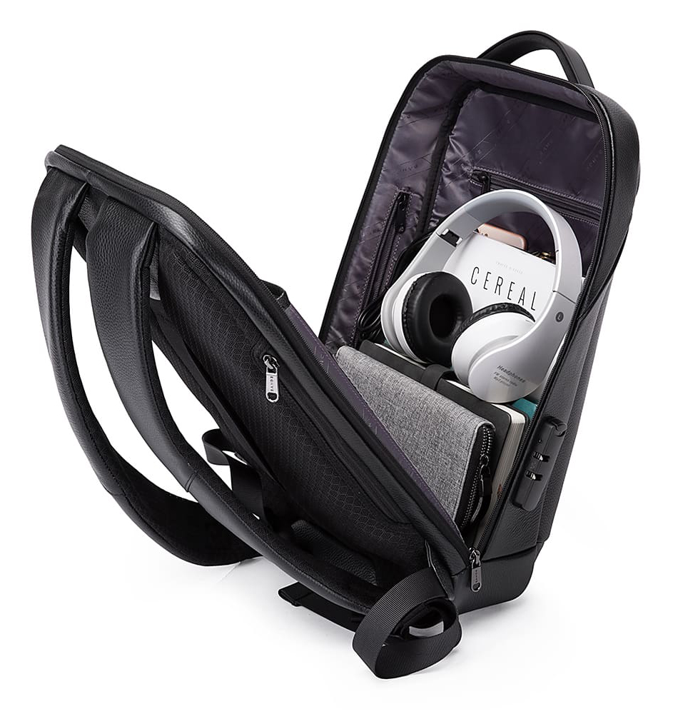 Ανδρικό ευρύχωρο και πρακτικό δερμάτινο σακίδιο πλάτης bussiness Laptop BANGE 21lt Backpack Laptop 15.6" 6621-BLACK Μαύρο
