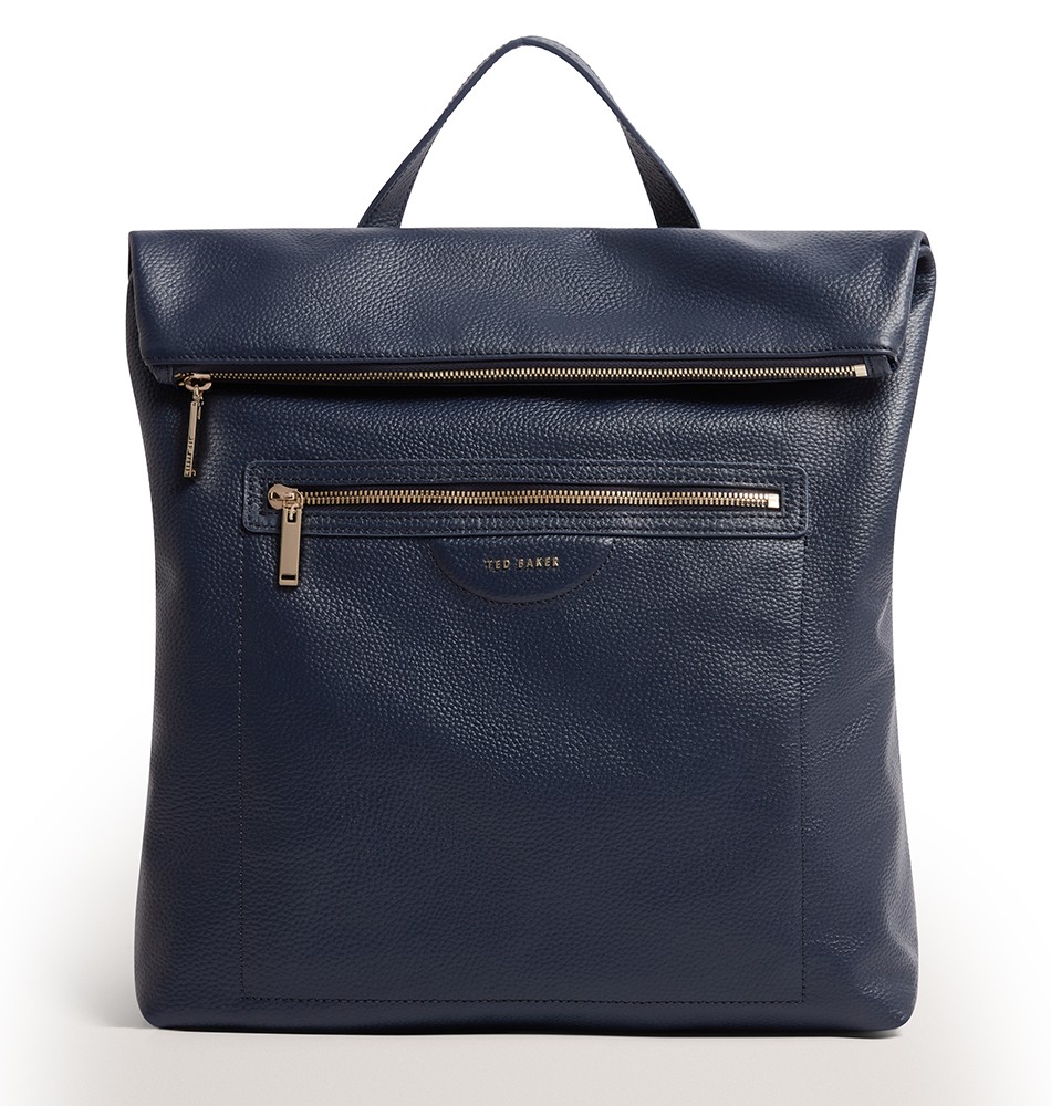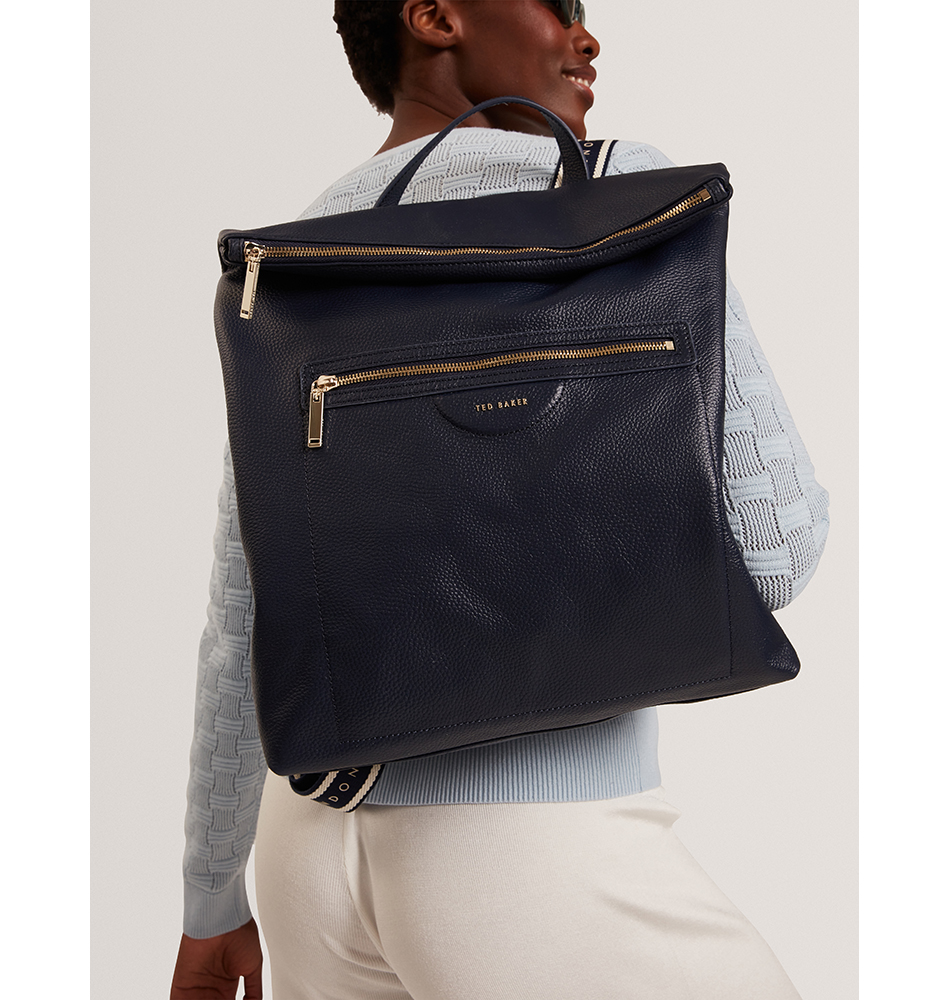 Δερμάτινο σακίδιο πλάτης TED BAKER Essaya Pebbled Leather Fold Over Backpack 281646-NAVY Μπλε