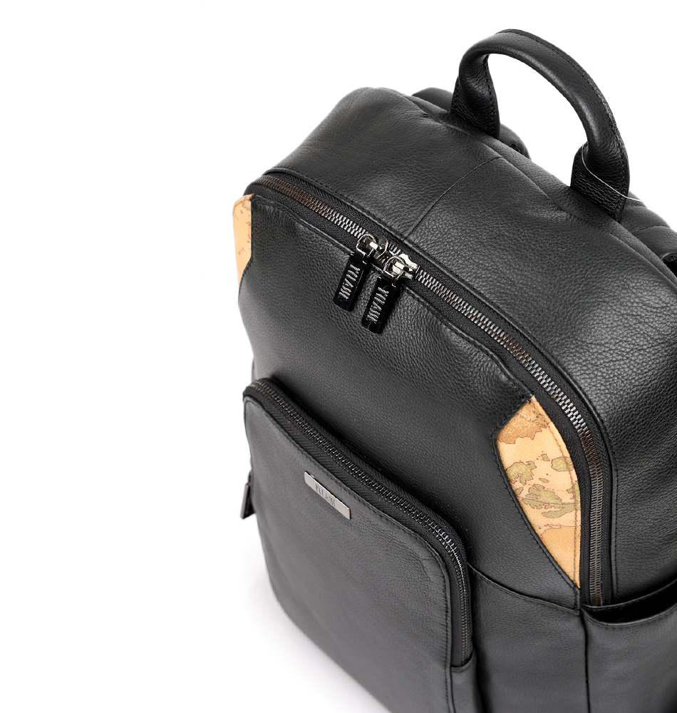 Δερμάτινο Σακίδιο Alviero Martini 1A Classe Gaelic Leather computer backpack Black LLD06-8162-0001 Μαύρο με λεπτομέρεια Geo classic. Επαγγελματικό σακίδιο με χώρους για λάπτοπ, τάμπλετ και έγγραφα, είναι τέλειο για καθημερινή χρήση γραφείου, αλλά και εν κινήσει χάρη στο υλικό το οποίο διαθέτει η πλάτη.