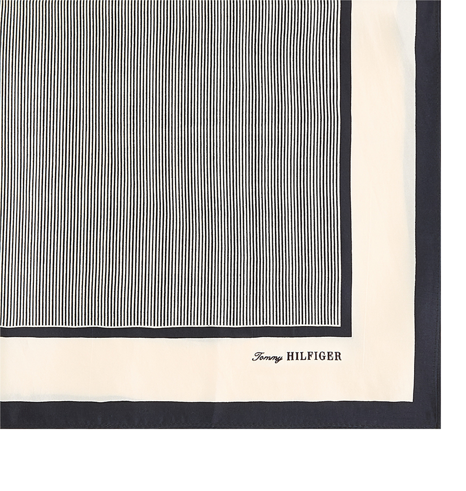 Γυναικείο φουλάρι Tommy Hilfiger TH Elevated Flag Silk Square AW0AW17629-DW6 Μπλε. Προσθέστε μια πινελιά μοτίβου στο ντύσιμό σας με αυτό το πολυτελές τετράγωνο μαντήλι από 100% μετάξι, διακοσμημένο με διαχρονικές ρίγες.