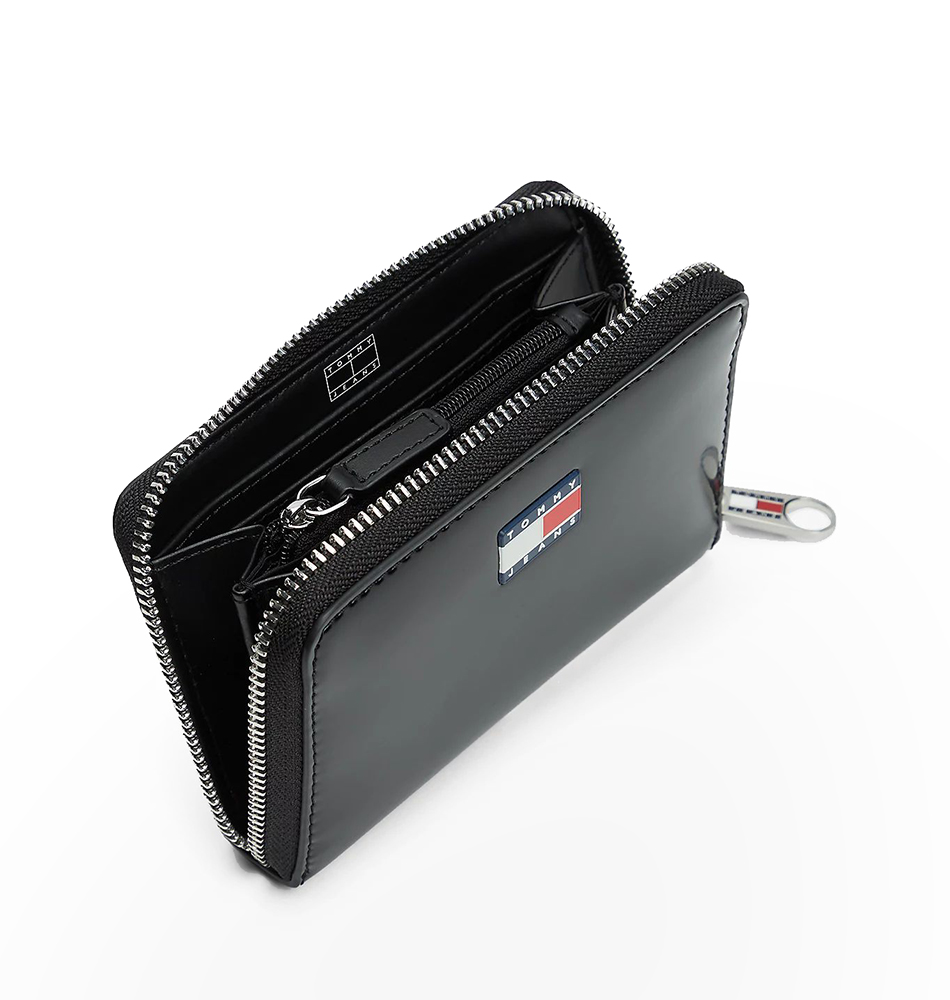 Γυναικείο πορτοφόλι κασετίνα TOMMY HILFIGER Essential Must Med Zip Around  AW0AW18090-BDS Μαύρο. Με το ασφαλές κλείσιμο με περιμετρικό φερμουάρ και τον κομψό, λιτό σχεδιασμό του, αυτό το λείο πορτοφόλι είναι ιδανικό για τις καθημερινές σας ανάγκες.