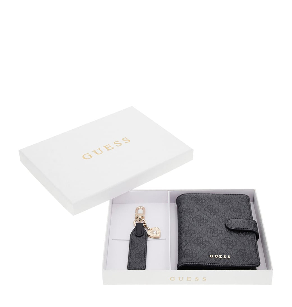Γυναικεία θήκη διαβατηρίου με λογότυπο 4G και μπρελόκ σε συσκευασία δώρου Guess Gift Box GFBOXWP5402-CLO Ανθρακί