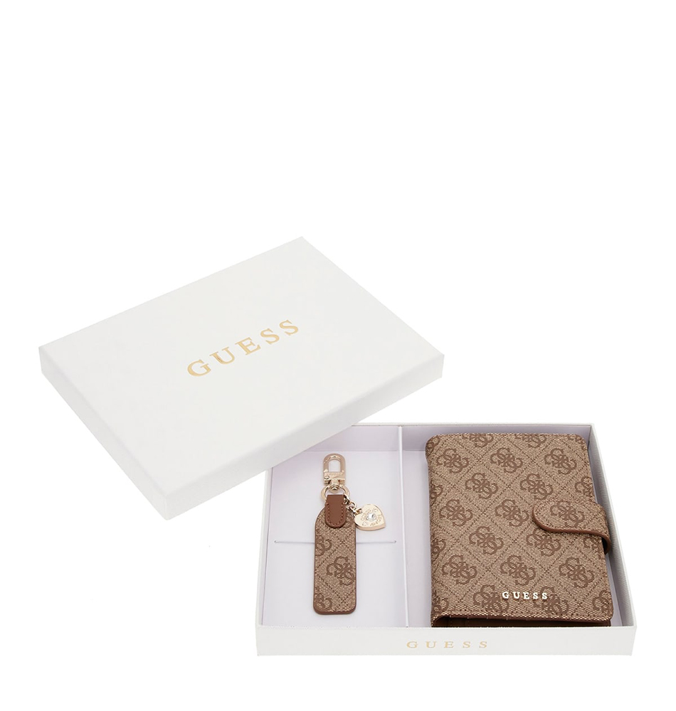 Γυναικεία θήκη διαβατηρίου με λογότυπο 4G και μπρελόκ σε συσκευασία δώρου Guess Gift Box GFBOXWP5402-LTL Μπεζ