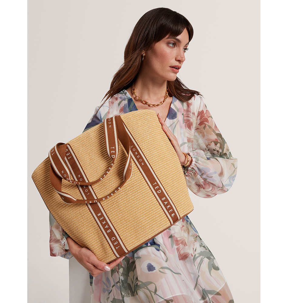 Τσάντα ώμου TED BAKER Rafiia Webbing Detail Raffia Large Tote Bag 284052-BROWN Ψάθα Ταμπά