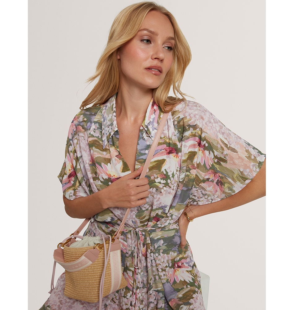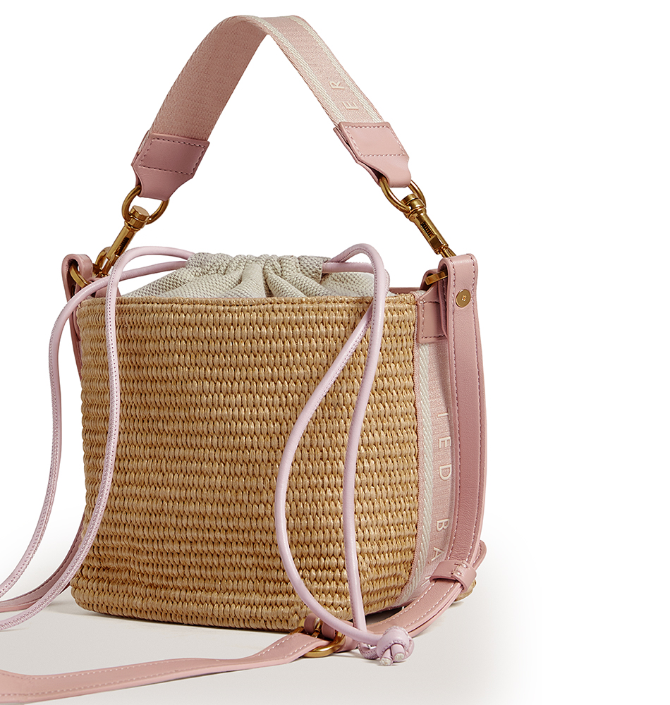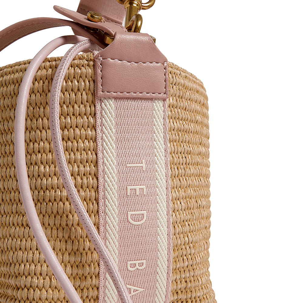 Τσάντα χιαστί TED BAKER Raffyna Webbing Detail Raffia Small Bucket Bag 284053-PINK Ροζ Ψάθα