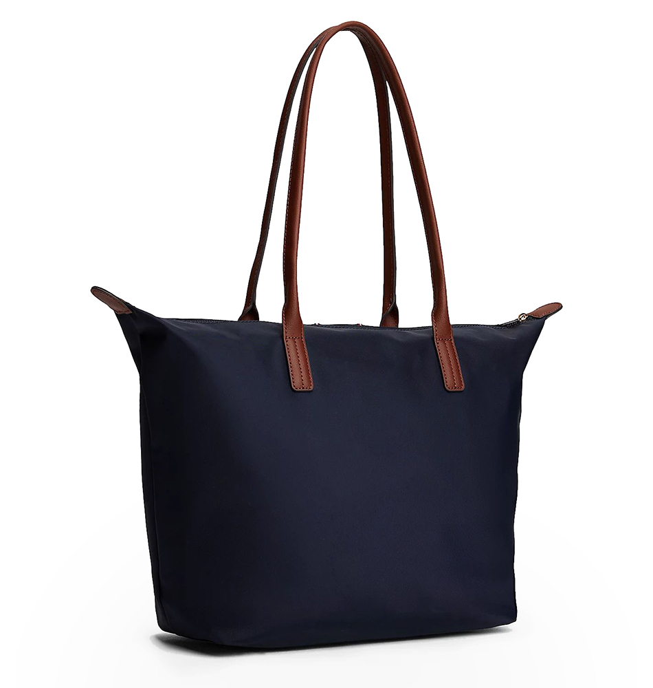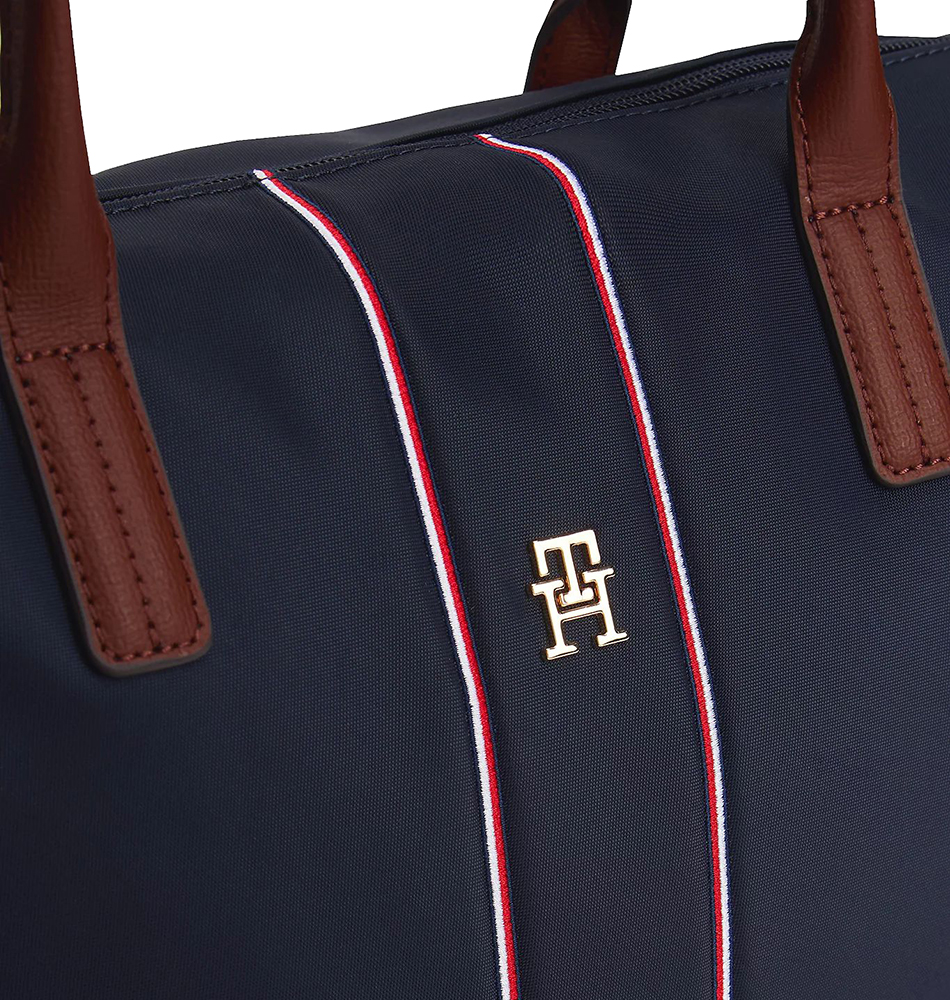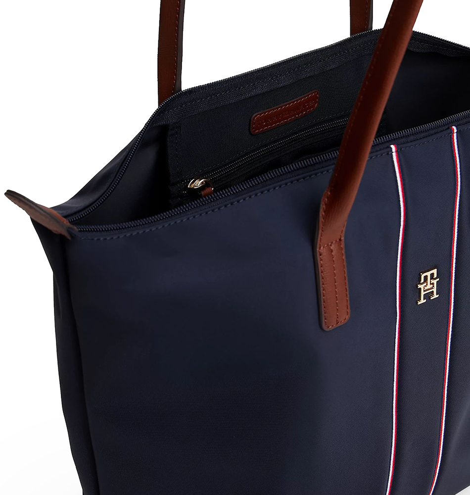 Γυναικεία τσάντα ώμου TOMMY HILFIGER TH Popette Monogram Tote AW0AW17706-0GY Μπλε. Αυτή η nylon tote τσάντα διαθέτει απαλή, ευρύχωρη σιλουέτα και διακοσμητική πλακέτα με το μονόγραμμα TH, συνδυάζοντας το κλασικό design με μια σύγχρονη αίσθηση πολυτέλειας.