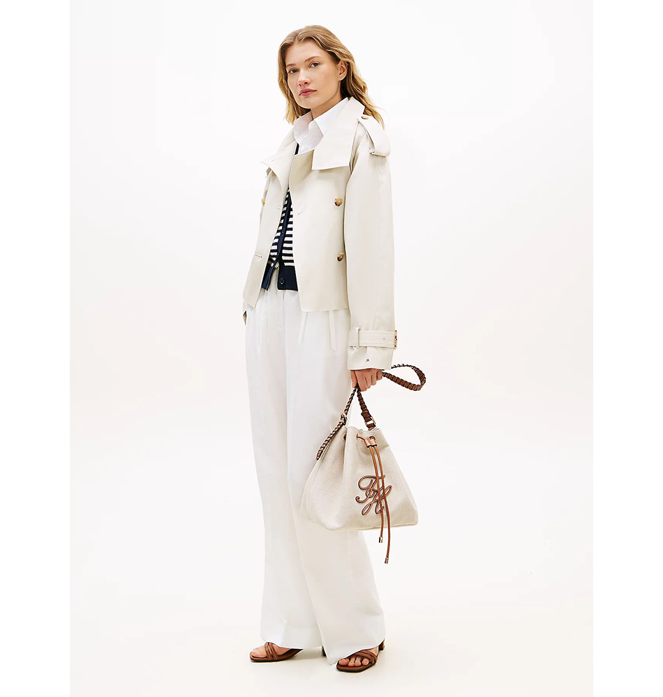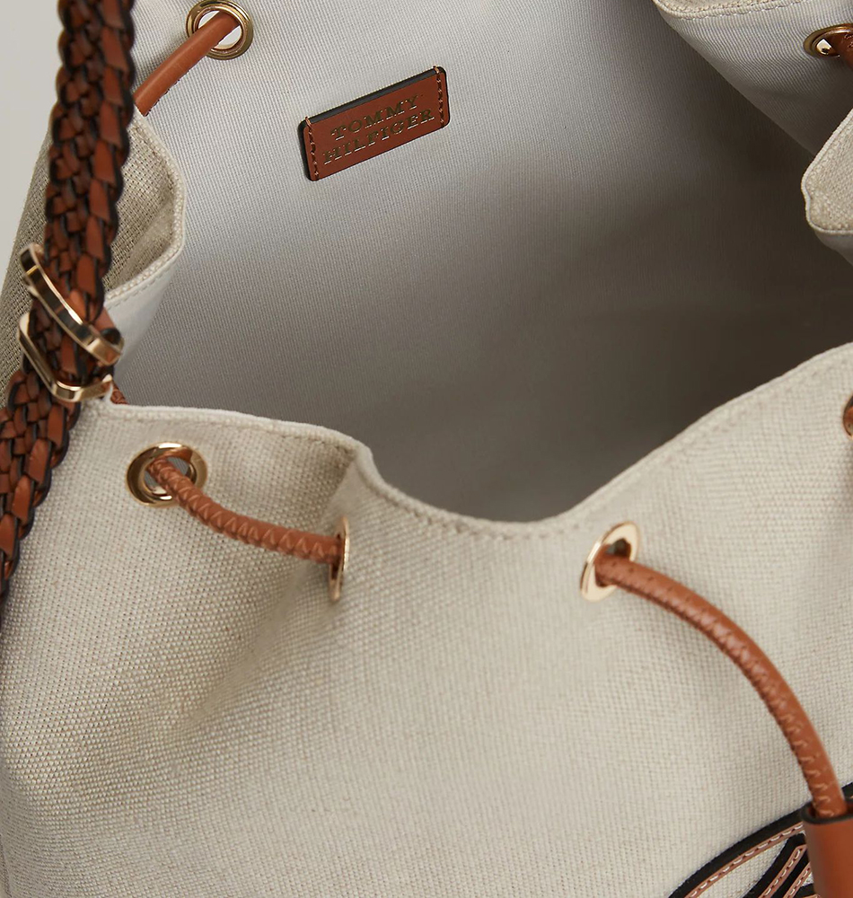 Γυναικεία τσάντα ώμου TOMMY HILFIGER TH Elevated Summer Canvas Bucket AW0AW18631-0F4 Μπεζ. Αυτή η bucket τσάντα αποπνέει καλοκαιρινή διάθεση, με χαλαρό σχέδιο με κορδόνι και κατασκευή από υψηλής ποιότητας καμβά από καθαρό λινό με ιδιαίτερες υφές.
