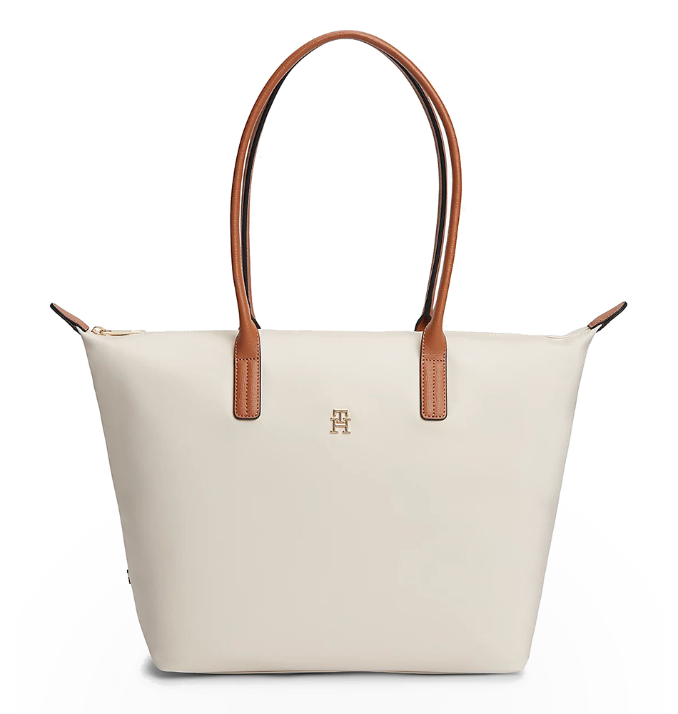 Γυναικεία τσάντα χειρός TOMMY HILFIGER TH Popette Monogram Tote AW0AW17711-AEO Μπεζ. Αυτή η nylon tote τσάντα διαθέτει απαλή, ευρύχωρη σιλουέτα και διακοσμητική πλακέτα με το μονόγραμμα TH, συνδυάζοντας το κλασικό design με μια σύγχρονη αίσθηση πολυτέλειας.