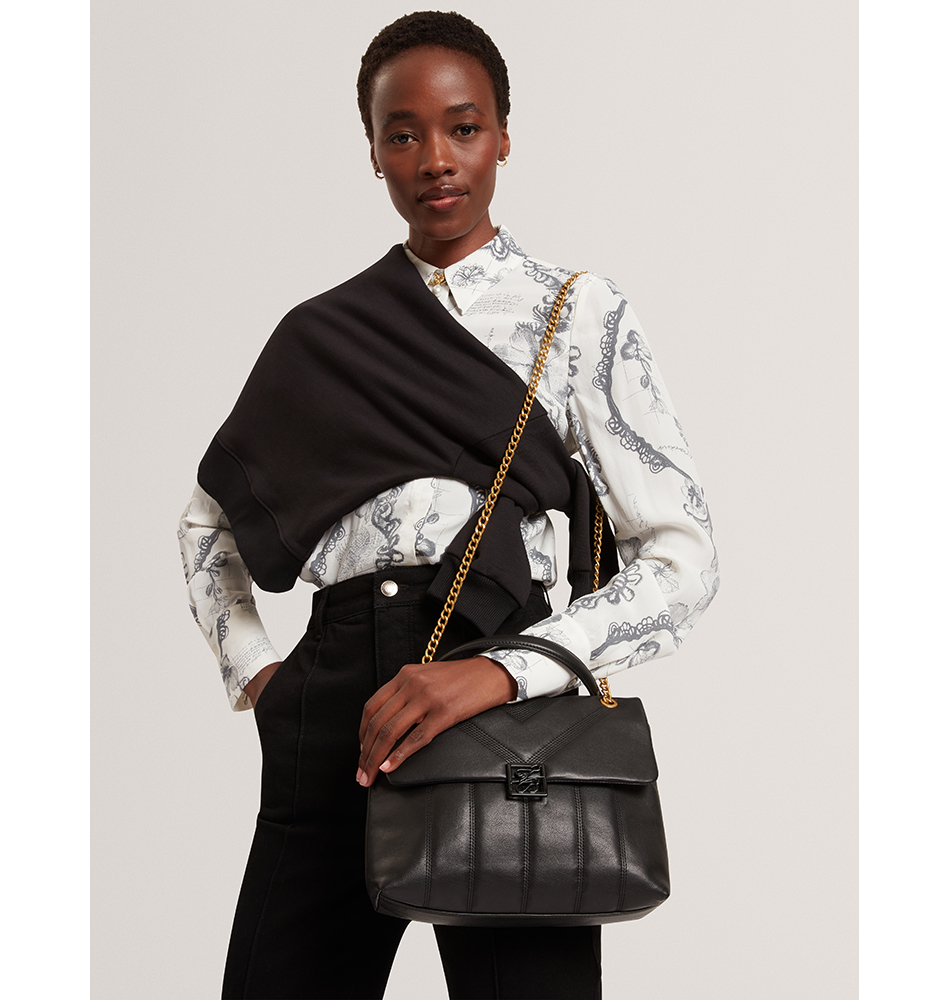 Τσάντα χιαστί TED BAKER Anileah TB Script Detail Leather Padded Shoulder Bag 281813-BLACK Μαύρο