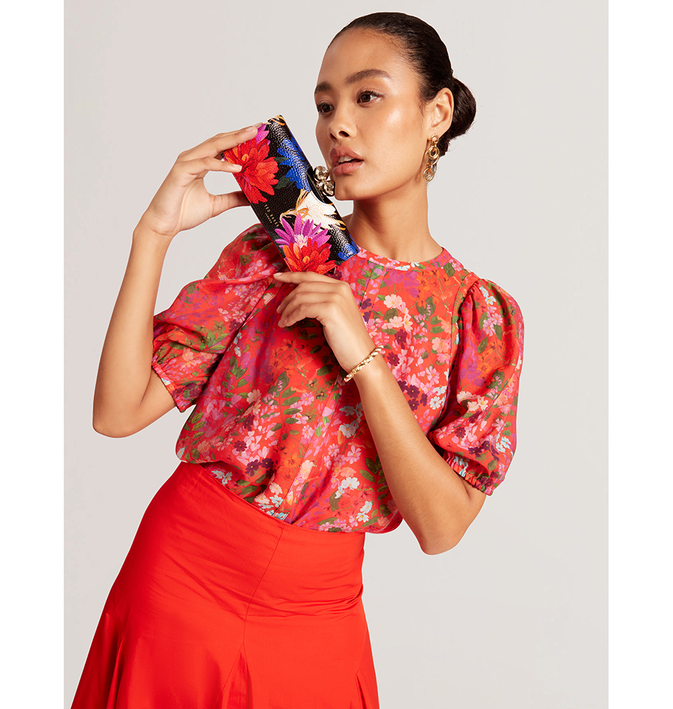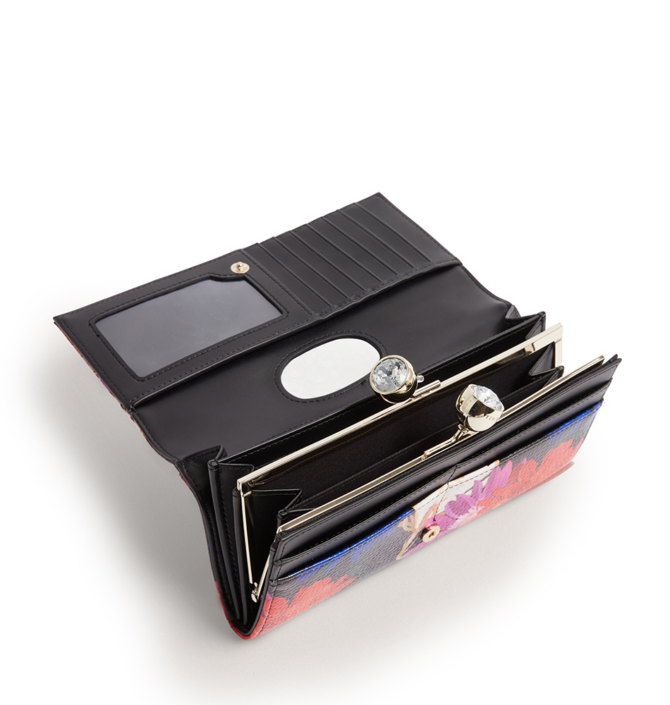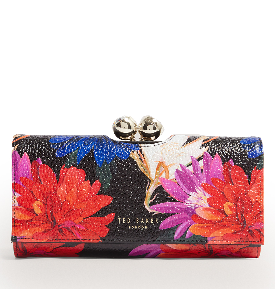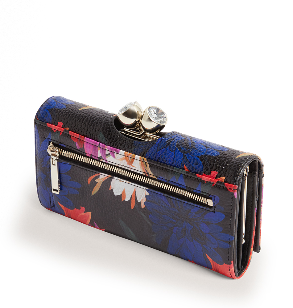 Πορτοφόλι - τσαντάκι δερμάτινο TED BAKER Amaliah Large Printed Rose Detail Bobble Purse 281557-BLACK Μαύρο.  Κομψός φάκελος με λουράκι για τον καρπό
