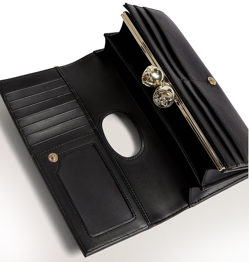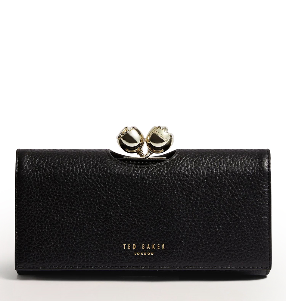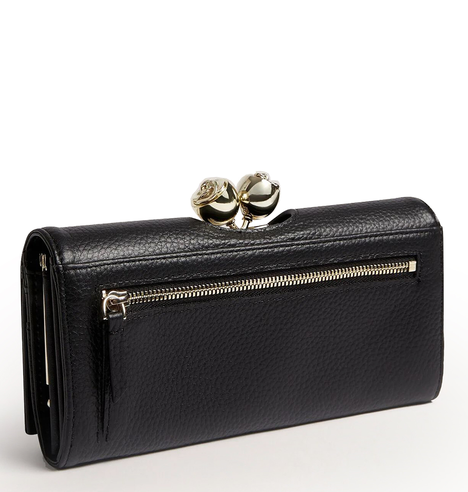 Πορτοφόλι - τσαντάκι δερμάτινο TED BAKER Roosali Rose Detail Large Bobble Purse 281672-BLACK Μαύρο. Κομψό μεγάλο πορτοφόλι με μεταλλικό κούμπωμα
