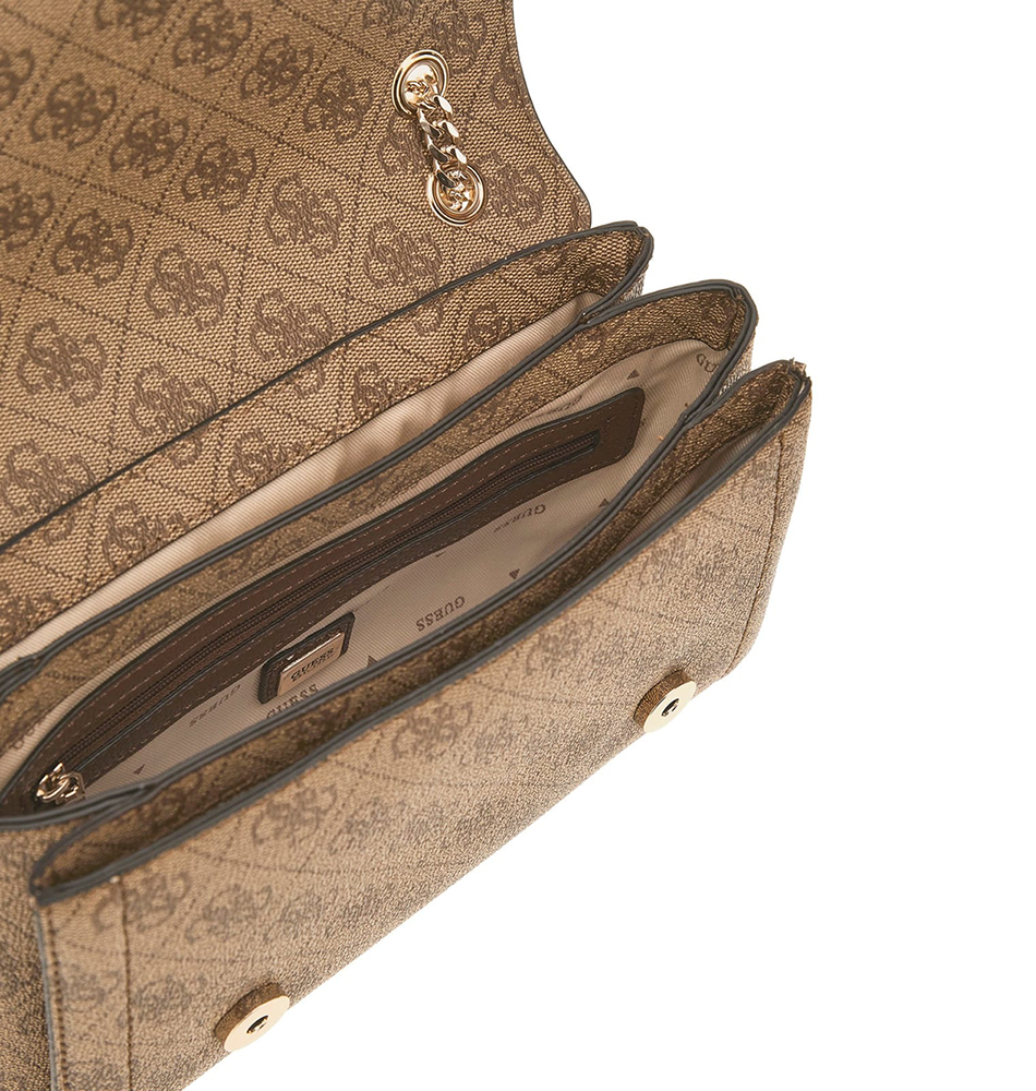 Γυναικείο τσαντάκι χιαστί GUESS Noelle Convertible XBody Flap HWBG9672210-LGW Καφέ.  Από την νέα συλλογή αυτή η υπέροχη τσάντα με ένα ιδιαίτερο και εξαιρετικό σχεδιασμό, μπορεί να σας συνοδεύσει στις εξόδους σας προσθέτοντας την τέλεια πινελιά.