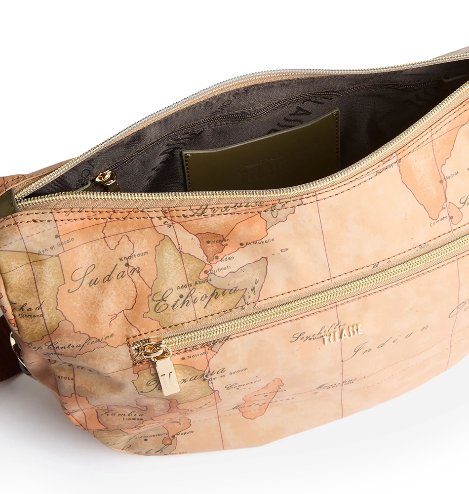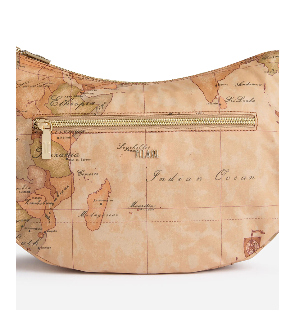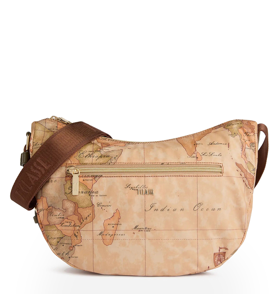 Γυναικεία χιαστί Alviero Martini 1A Classe Highland LLD37-S578-0609 Ταμπά. Η σειρά Highland Soft Line ανανεώνει την εμφάνιση της μεσαίου μεγέθους τσάντας Soft fabric halfmoon με προσθήκες από απαλό δέρμα, διαμορφωμένο σε τοξωτό σχήμα που θυμίζει τη γοτθική αρχιτεκτονική της Σκωτίας. Η τσάντα είναι ευρύχωρη με εσωτερικές τσέπες και μια εξωτερική τσέπη, ενώ η εκτύπωση Geo Classic και το λογότυπο 1ᴬ Classe προσθέτουν τη χαρακτηριστική πινελιά της μάρκας. Το εύκαμπτο, αδιάβροχο υλικό την καθιστά ιδανική για βροχερές μέρες, προσθέτοντας μια πινελιά από την άγρια φύση των Highlands σε όλα τα φθινοπωρινά looks.
