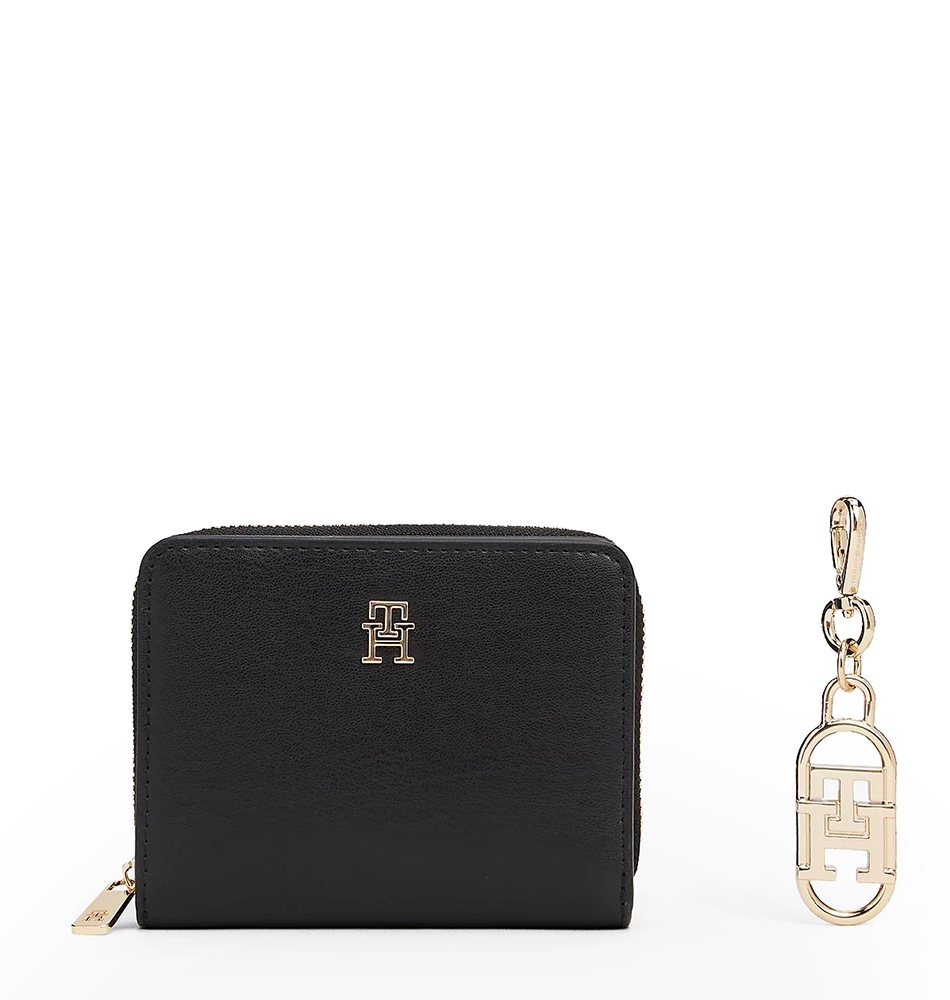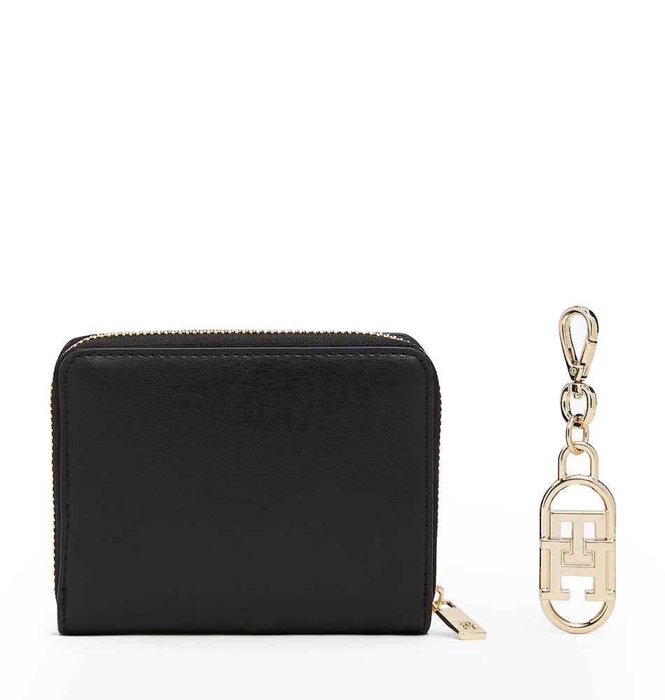 Γυναικείο πορτοφόλι κασετίνα TOMMY HILFIGER Zip Around And Charm AW0AW18041-BDS Μαύρο. Αυτό το εκλεπτυσμένο σετ περιλαμβάνει ένα πορτοφόλι με περιμετρικό φερμουάρ και ένα charm με το μονόγραμμα TH, ώστε να προσθέσετε μια χαρακτηριστική λεπτομέρεια και σε άλλα αξεσουάρ σας.