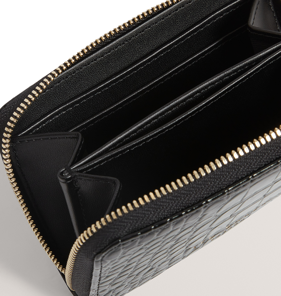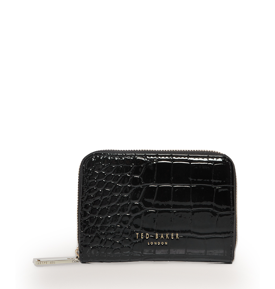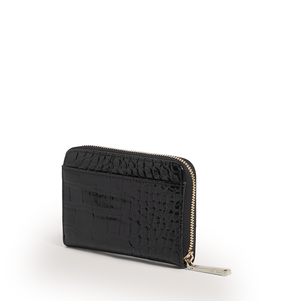 Μικρό Πορτοφόλι κροκό - καρτοθήκη TED BAKER Varlee Croc Effect Small Zip Around Wallet 282508-BLACK Μαύρο Κροκό .  Κομψό κροκό πορτοφόλι με φερμουάρ