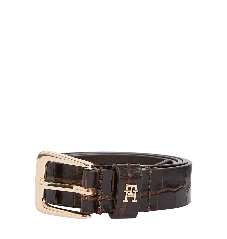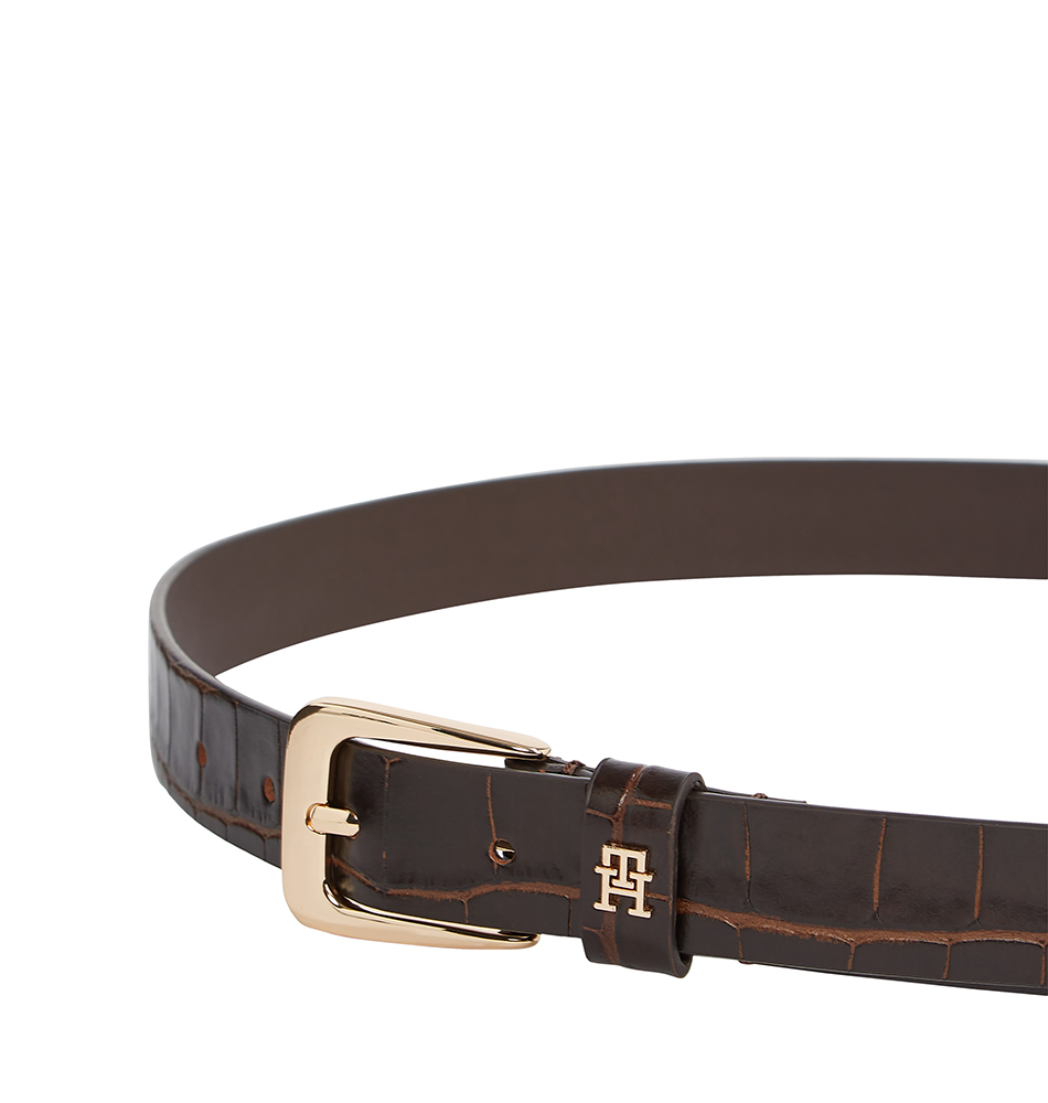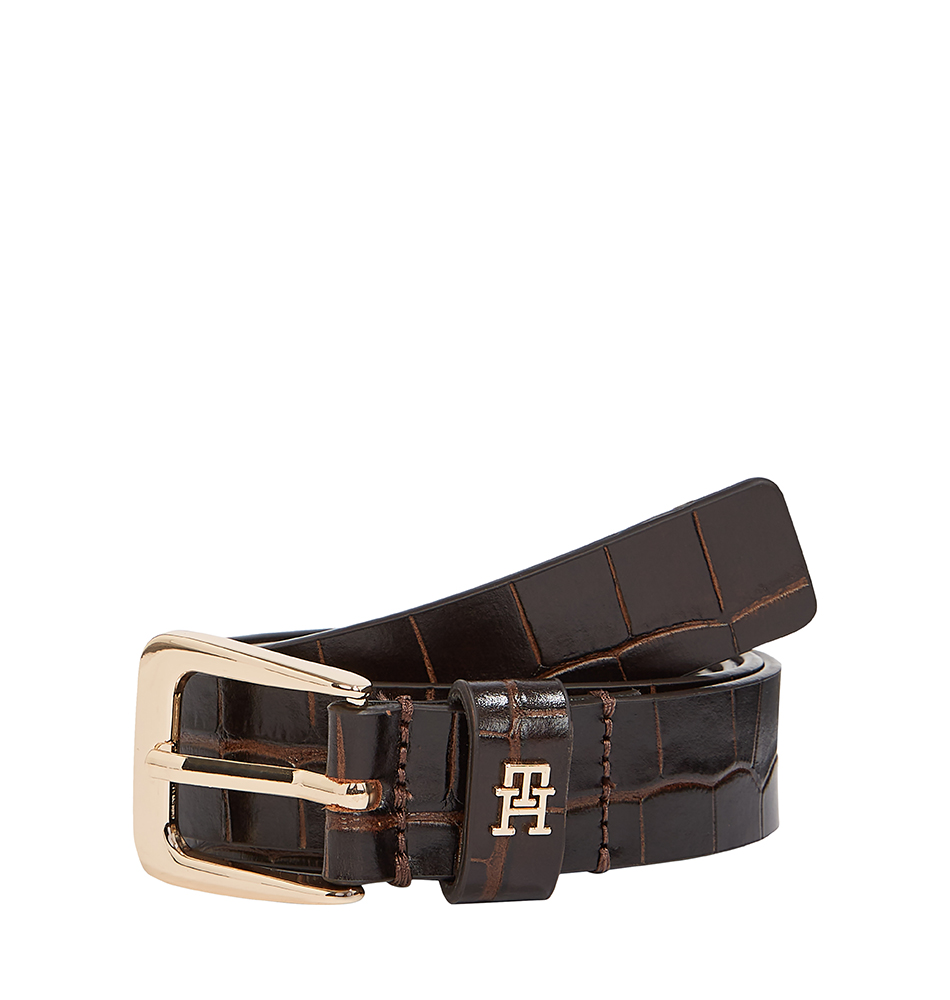 Γυναικεία ζώνη TOMMY HILFIGER TH Libre 2.5 Croc AW0AW17975-GSZ Καφέ Κροκό. Αυτή η γυναικεία ζώνη χαρίζει αβίαστη κομψότητα, φτιαγμένη με croco σχέδιο και εντυπωσιακό μονόγραμμα TH στο θηλάκι.