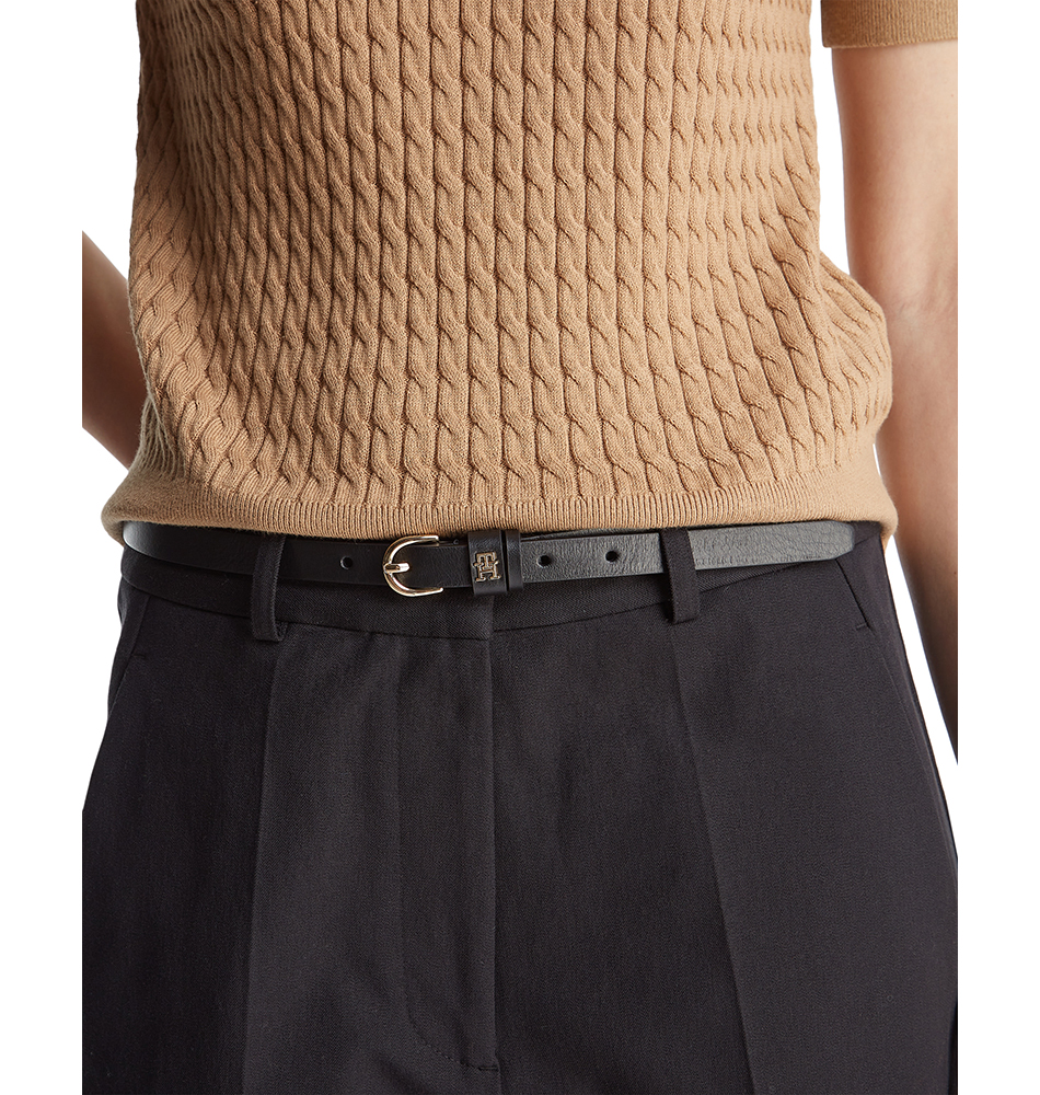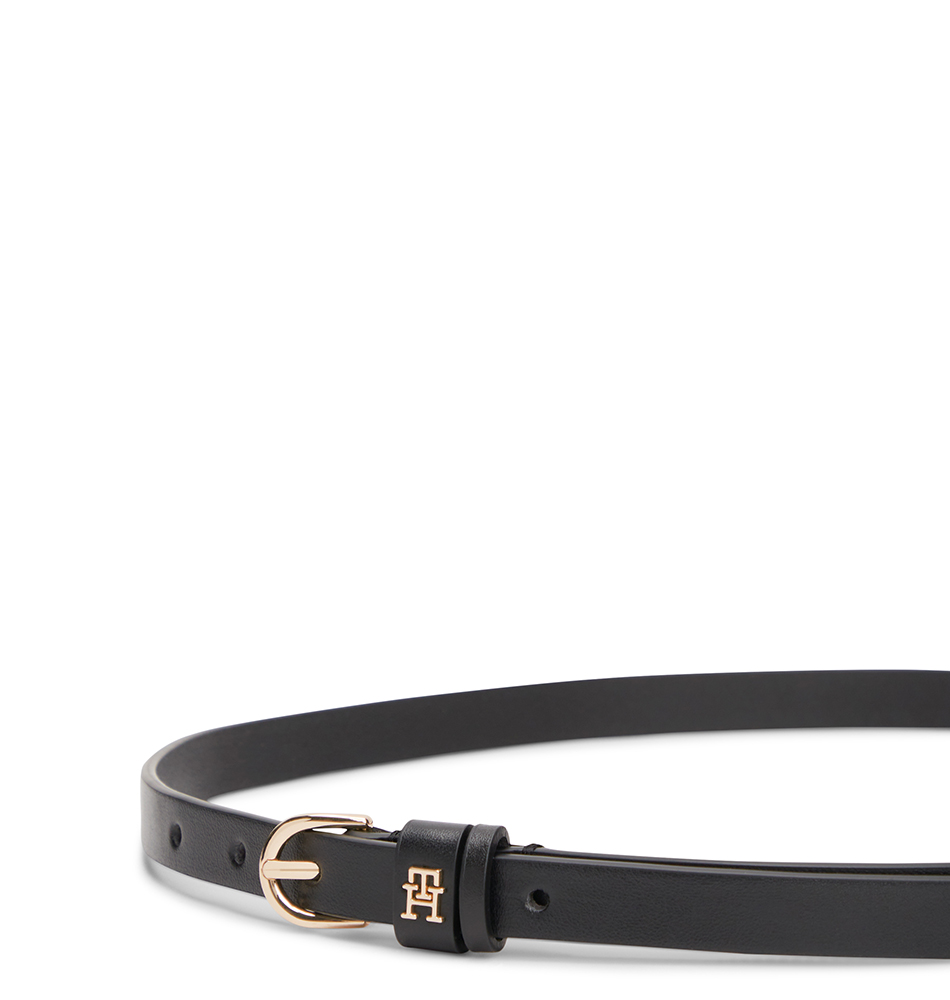 Γυναικεία ζώνη TOMMY HILFIGER Essential Effortless 1.5 AW0AW17759-BDS Μαύρο. Ολοκληρώστε τις εμφανίσεις σας με αυτή τη κομψή δερμάτινη ζώνη, που διαθέτει γυαλιστερή αγκράφα με εφέ και μεταλλική πινακίδα με το μονόγραμμα TH.