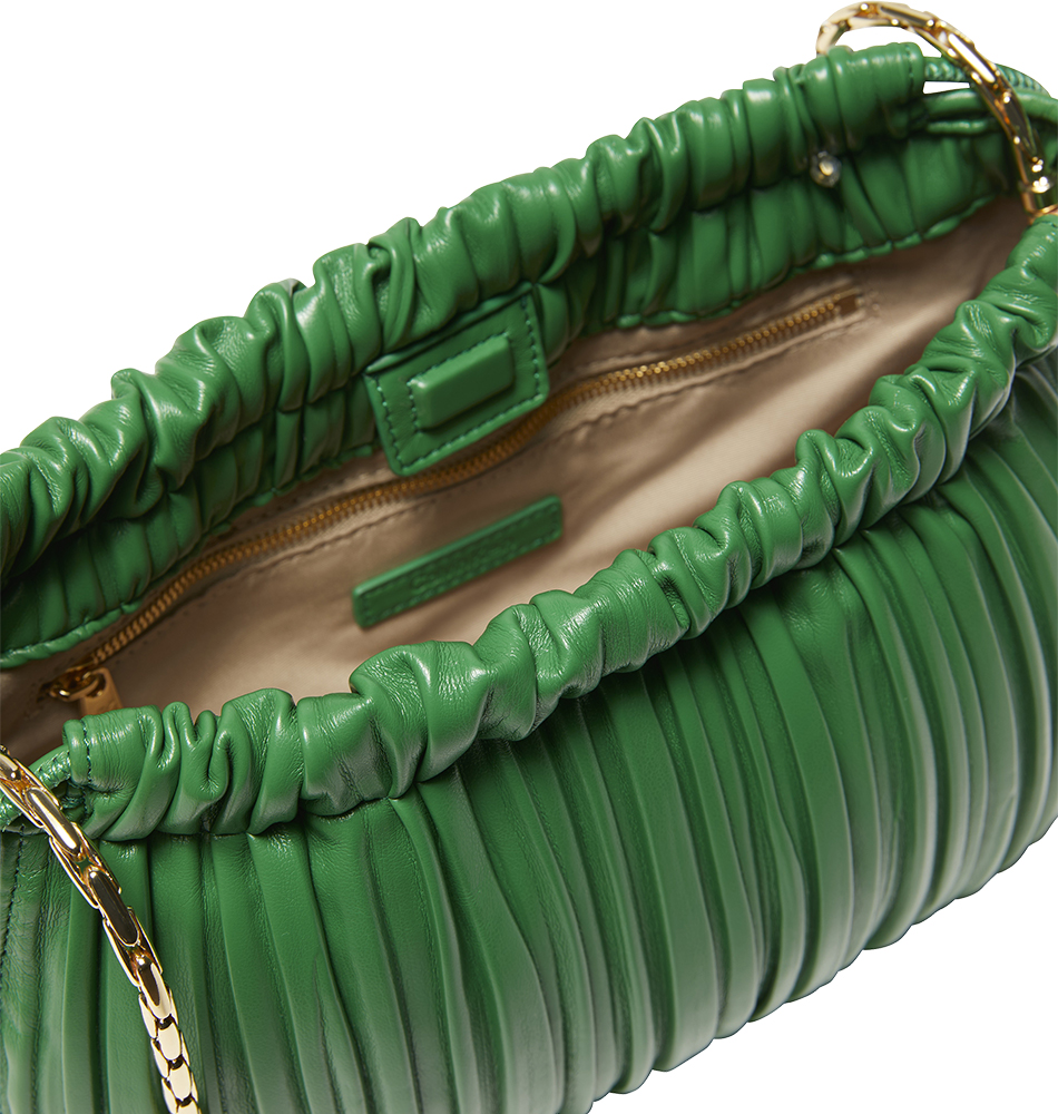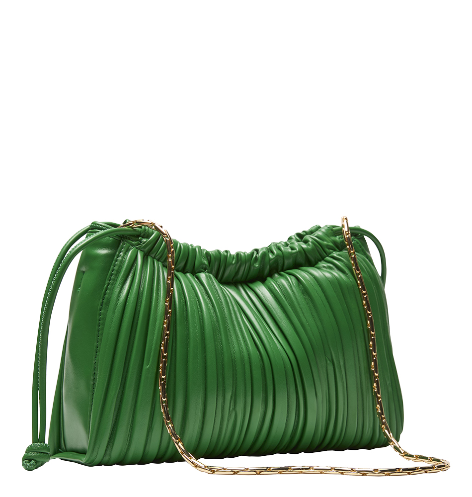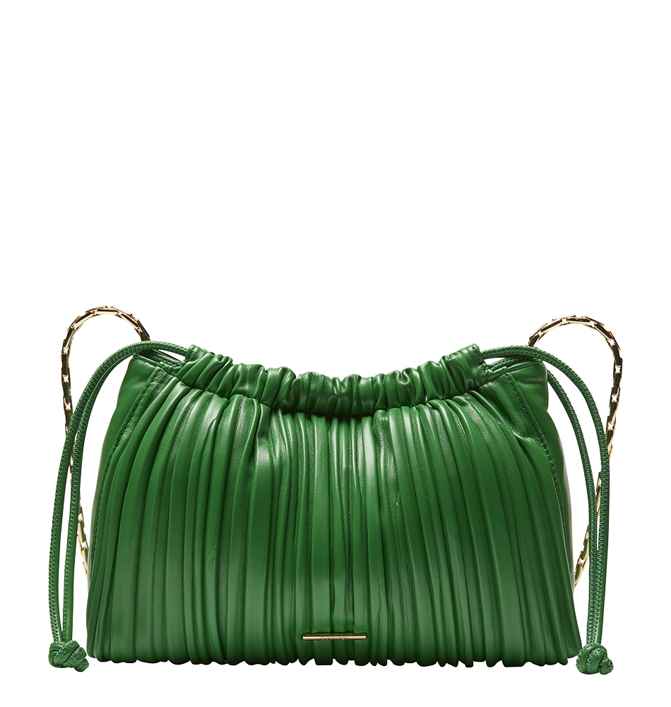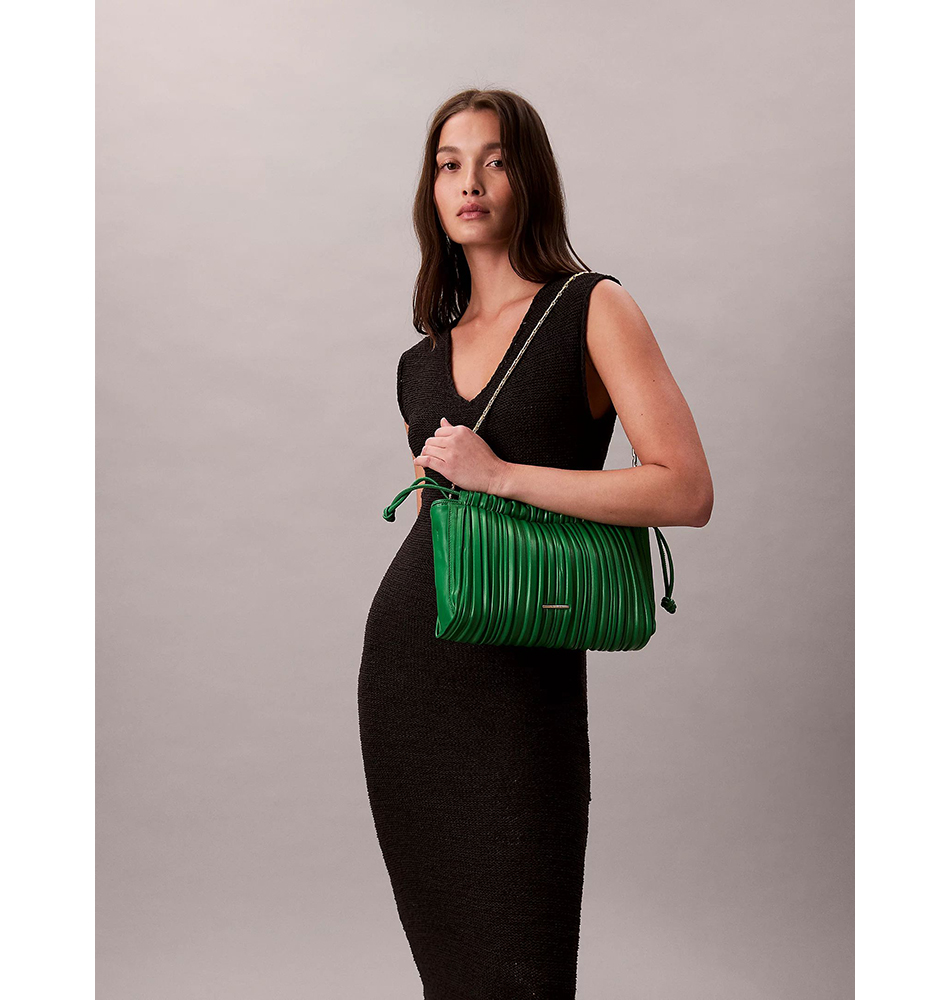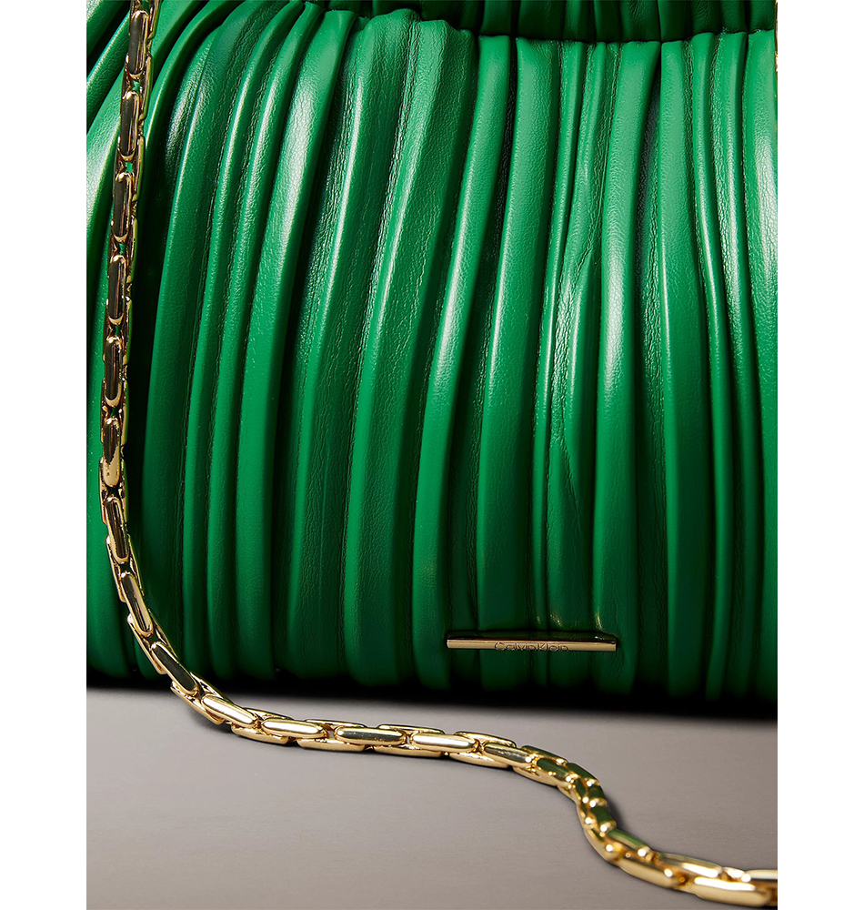 Γυναικεία τσάντα ώμου Calvin Klein Drawstring Plisse  LV04F3076G-0K6 Πράσινο. Κατασκευασμένη από εξαιρετικά απαλή πλισέ συνθετική δερμάτινη ύλη, αυτή η τσάντα διαθέτει ένα κομψό κλείσιμο με κορδόνι και έναν ιμάντα αλυσίδας υψηλής ποιότητας εμπνευσμένο από κοσμήματα για μια αίσθηση πολυτέλειας.