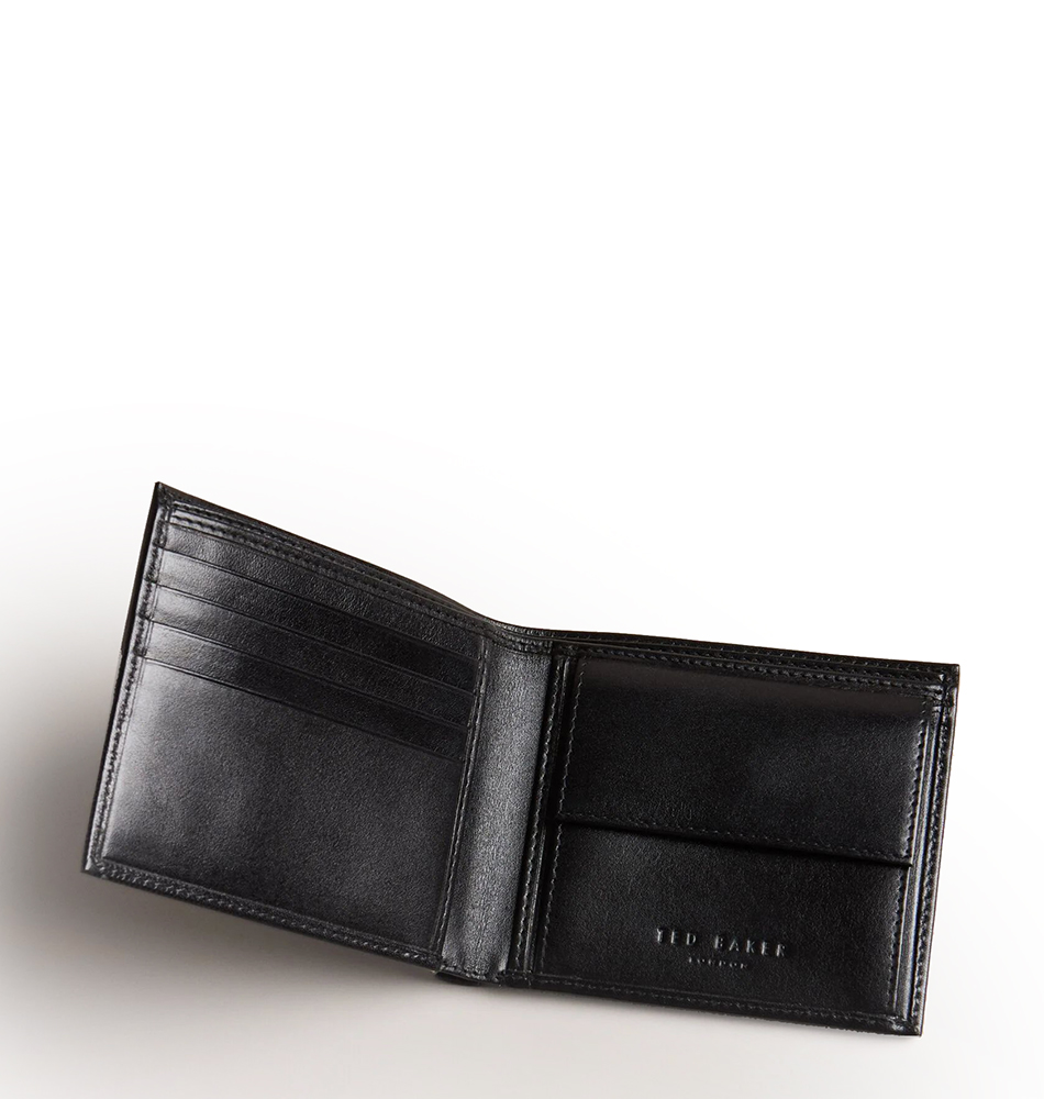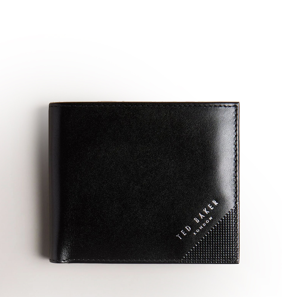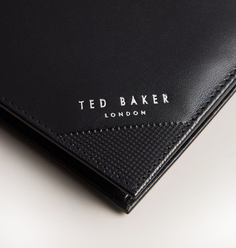Ανδρικό δερμάτινο πορτοφόλι TED BAKER Prugs Embossed Corner Leather Bifold Coin 281627-BLACK Μαύρο. Νέα συλλογή!