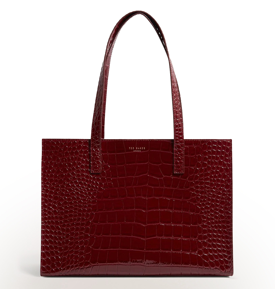 Τσάντα ώμου TED BAKER Welona Elongated Patent Croc Effect Large Icon Tote Bag 282509-WINE Μπορντό
