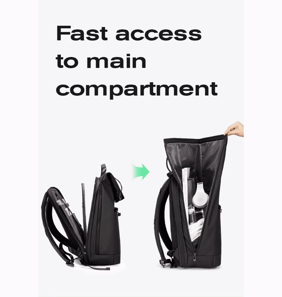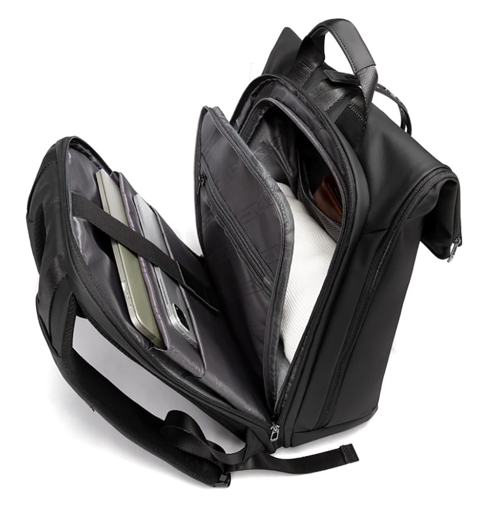 Αδιάβροχο επαγγελματικό σακίδιο για φορητούς υπολογιστές που οργανώνει τα αντικείμενά.