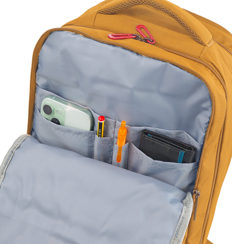 Σακίδιο ταξιδιού με μοντέρνο και λειτουργικό σχεδιασμό από τεχνικό ύφασμα. Με καθαρές γραμμές, διαθέτει ευρύχωρες μπροστινές τσέπες. Το έντονο κόκκινο φερμουάρ προσθέτει μια ξεχωριστή, σπορ πινελιά.