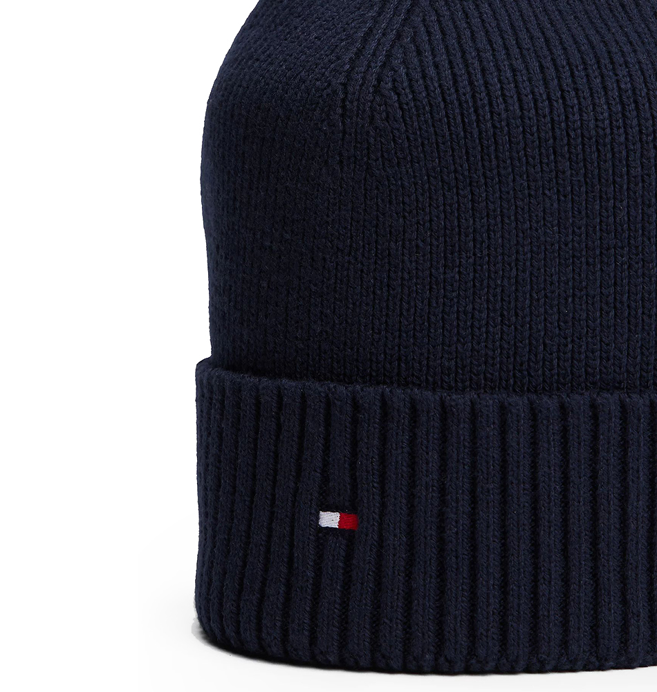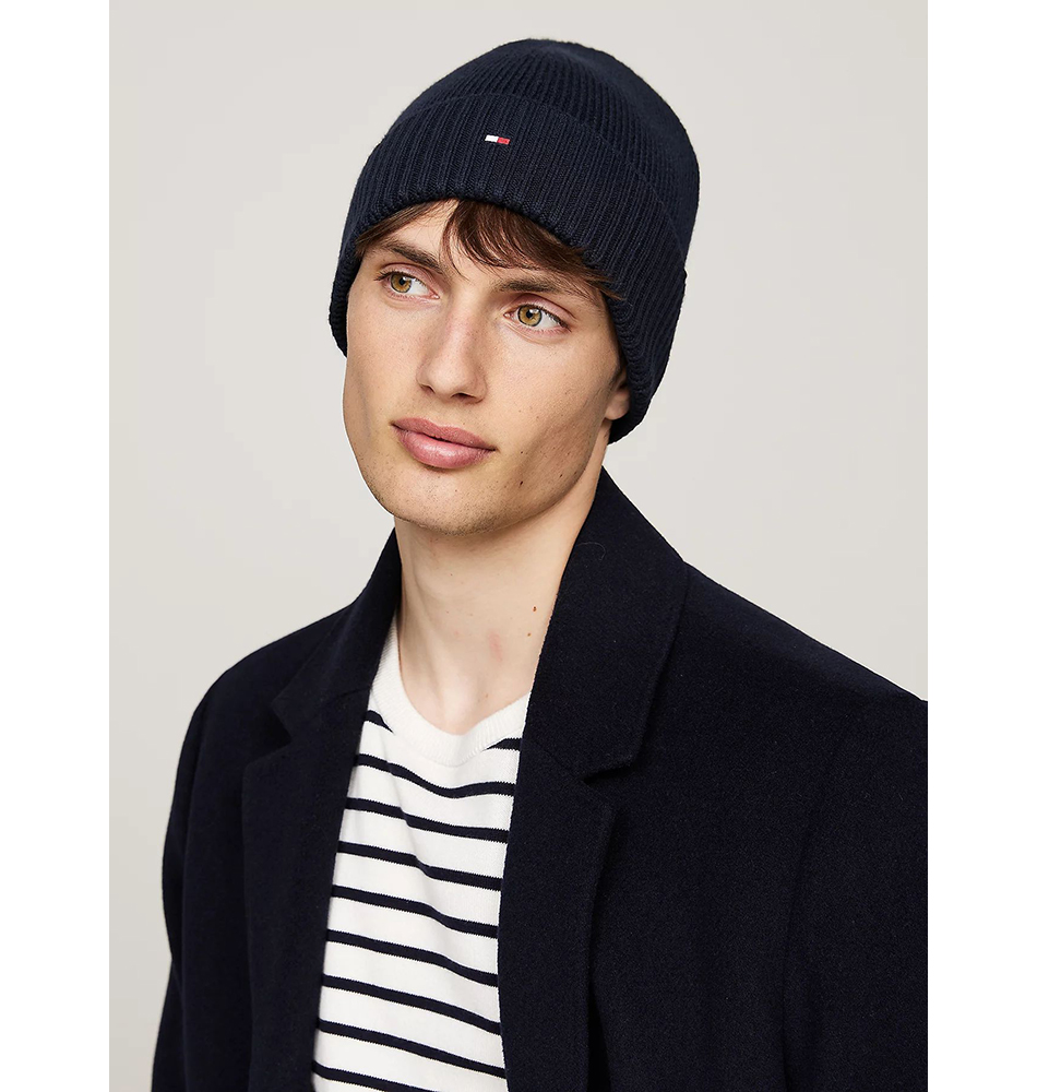 Ανδρικό σκουφάκι TOMMY HILFIGER TH Flag Beanie with Cashmere AM0AM12796-DW6 Μπλε. Νέα συλλογή. Μείνε ζεστός με αυτόν τον άνετο σκούφο, φτιαγμένο από premium μείγμα βαμβακιού Pima και κασμίρ για εξαιρετικά απαλή υφή.