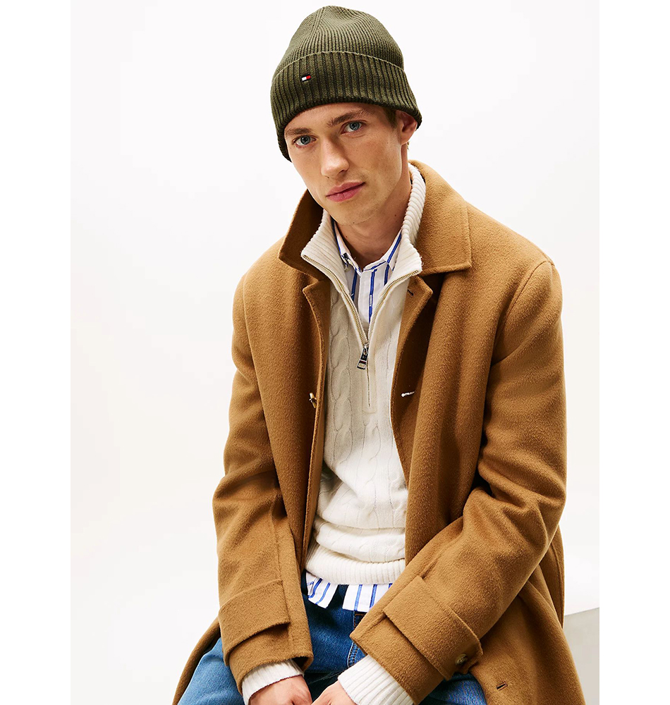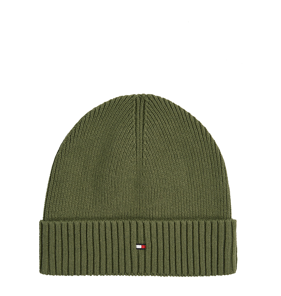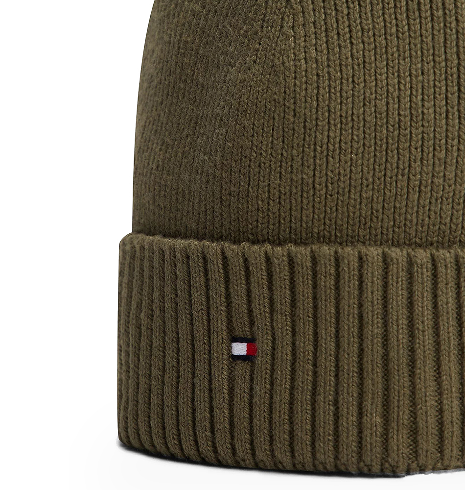 Ανδρικό σκουφάκι TOMMY HILFIGER TH Flag Beanie with Cashmere AM0AM12796-MT1 Πράσινο. Νέα συλλογή. Μείνε ζεστός με αυτόν τον άνετο σκούφο, φτιαγμένο από premium μείγμα βαμβακιού Pima και κασμίρ για εξαιρετικά απαλή υφή.