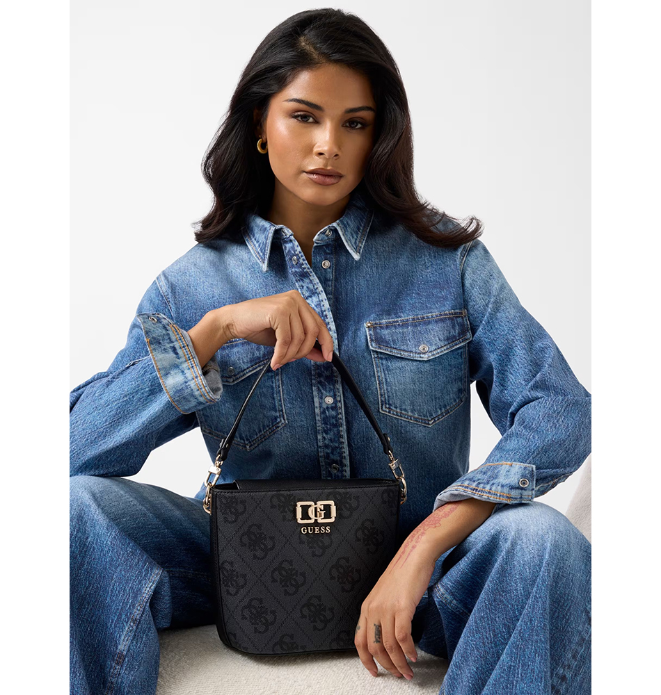 Τσάντα χειρός/ώμου GUESS Karnilla Logo Bucket HWOS9901010-CLO Ανθρακί. Μια κομψή και ευρύχωρη τσάντα ώμου από τη νέα συλλογή Guess.