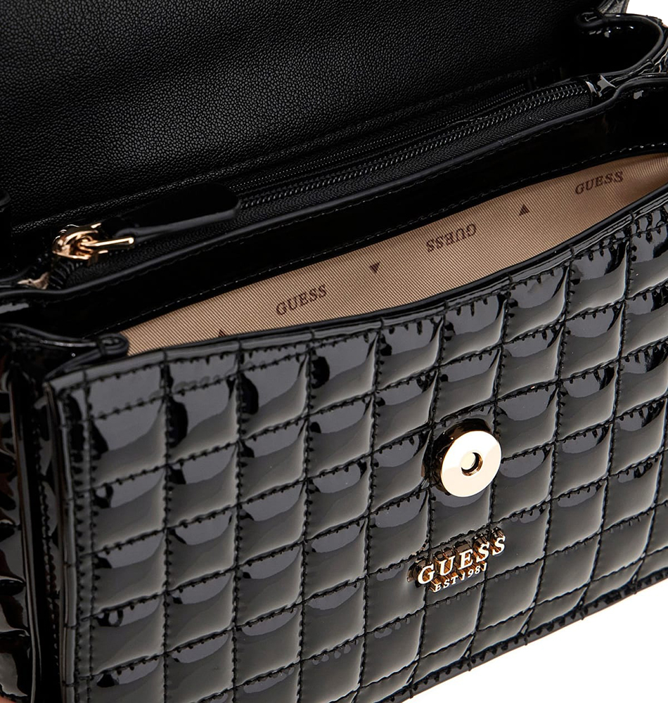 Γυναικεία τσάντα ώμου GUESS Nadira Convertible XBody Flap HWQT8424210-BLA Μαύρο. Από την νέα συλλογή η συγκεκριμένη τσάντα σε μέγεθος που μπορεί να φορεθεί άνετα όλες τις ώρες. Το ιδιαίτερο χαρακτηριστικό της η μεγάλη καπιτονέ επιφάνεια.