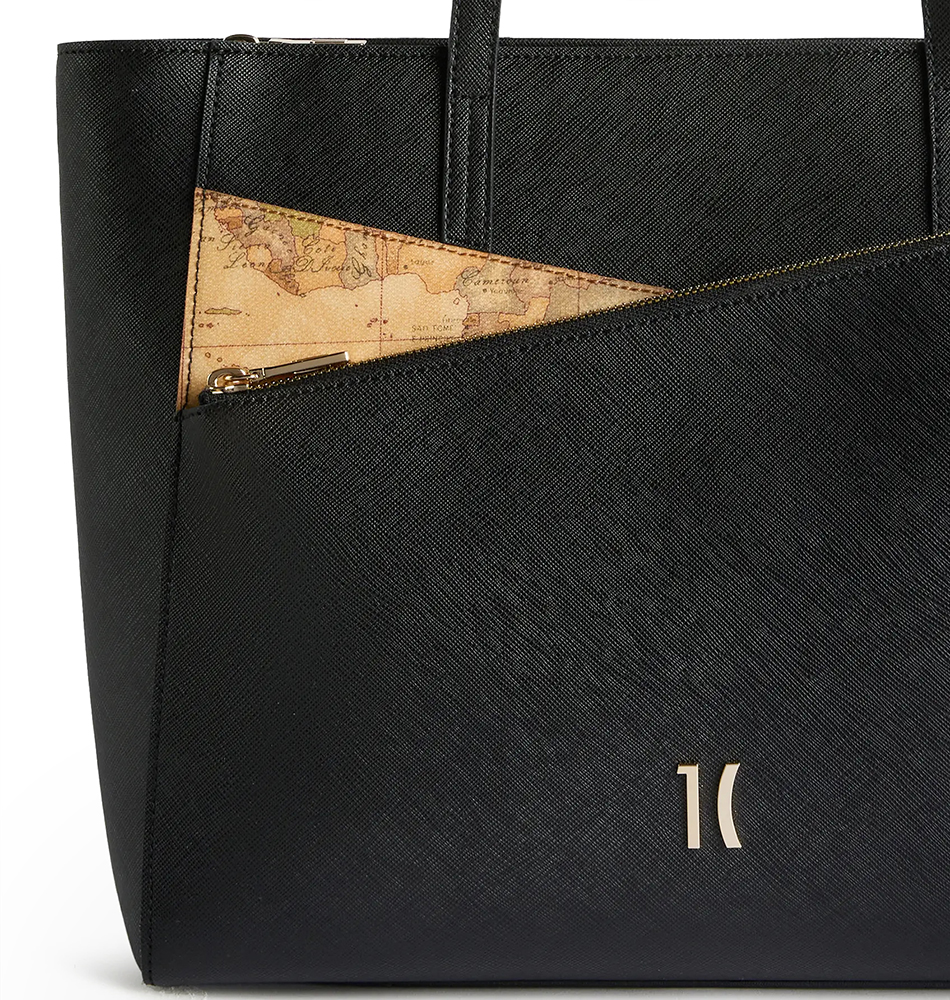 Γυναικεία τσάντα χειρός Alviero Martini 1A Classe Pearl City LMLE11-9913-0001 Μαύρο. Κατασκευασμένη από ύφασμα με ανάγλυφη υφή Saffiano, η τσάντα Pearl City shopper διαθέτει μπροστινή τσέπη σε συνδυασμό με ένθετο από ύφασμα Geo Classic, δημιουργώντας ένα κομψό ασύμμετρο σχέδιο. Το λογότυπο 1C σε απαλό χρυσό στο κάτω μέρος τονίζει ακόμη περισσότερο τη χαρακτηριστική ταυτότητα του brand. Χάρη στους ευρύχωρους και πρακτικούς όγκους της, με πολλές θήκες, αποτελεί την ιδανική επιλογή για τις βόλτες στην πόλη, προσφέροντας μίνιμαλ αλλά ξεχωριστό στυλ που ταιριάζει απόλυτα με τα outfits της σεζόν.