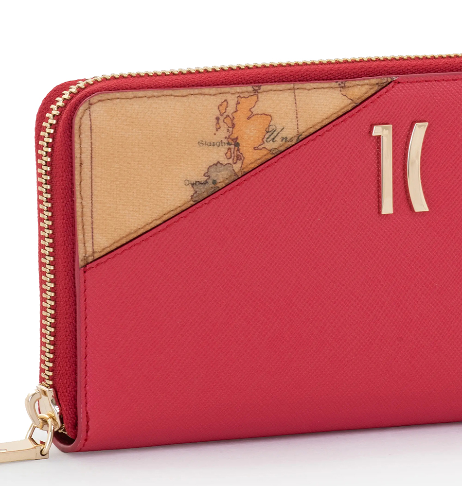 Γυναικείο πορτοφόλι κασετίνα Alviero Martini 1A Classe Pearl City LMPP43-9913-350P Κόκκινο. Κατασκευασμένο από ύφασμα με ανάγλυφη υφή Saffiano και περλέ φινίρισμα, το πορτοφόλι Flying City zip-around ξεχωρίζει για τη λεπτομέρεια από ύφασμα Geo Classic που δημιουργεί ένα ασύμμετρο σχέδιο, αναδεικνύοντας το λογότυπο 1C σε απαλό χρυσό. Διαθέτει πολλές εσωτερικές θήκες για όσους θέλουν να έχουν τα πάντα οργανωμένα και αποτελεί τον ιδανικό σύμμαχο για τις ημέρες των αγορών.