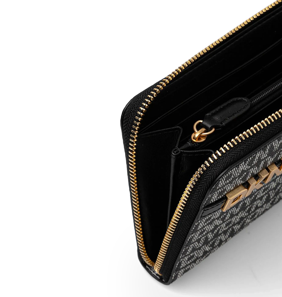 Γυναικείο πορτοφόλι DKNY Avril Wallet Zip Around R5215M28-XLB Μαύρο. Γυναικείο πορτοφόλι από την νέα συλλογή. Το εφέ του πορτοφολιού το κομψό logo DKNY