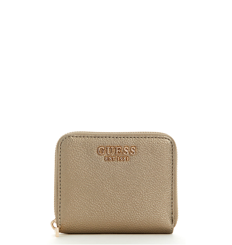Γυναικείο πορτοφόλι Guess Laurel Small Zip Around SWBG7459137-PEW Χρυσό. Από την νέα συλλογή της GUESS ένα πολύ όμορφο μικρό πορτοφόλι το οποίο διαθέτει χώρους για όλα απαραίτητα για μια έξοδό σας.