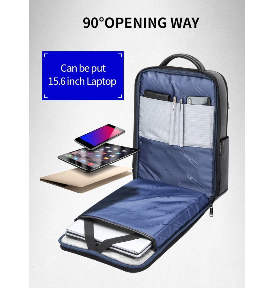 Ανδρικό ευρύχωρο και πρακτικό δερμάτινο σακίδιο πλάτης bussiness Laptop BOPAI 24lt Backpack Laptop 15.6" 61-70111-BLACK Μαύρο