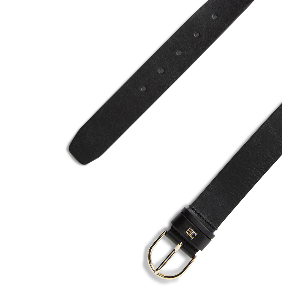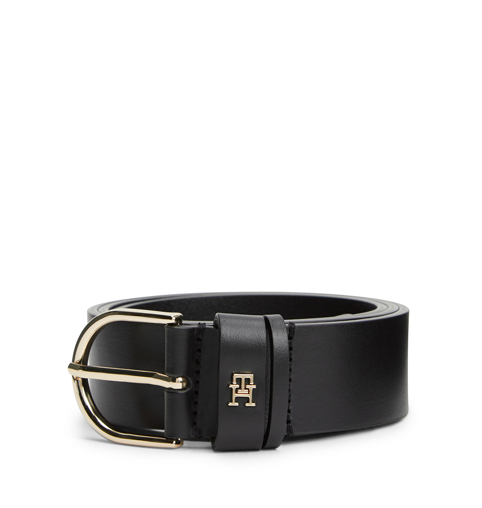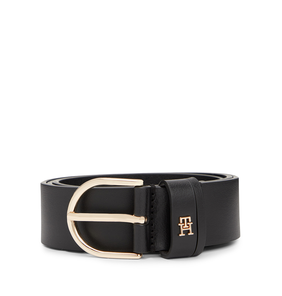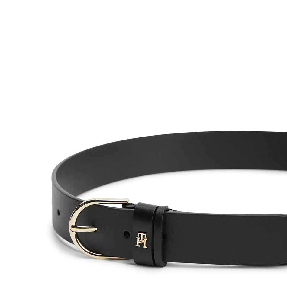 Γυναικεία ζώνη TOMMY HILFIGER Essential Effortless 3.5 AW0AW17757-BDS Μαύρο. Ολοκληρώστε τις εμφανίσεις σας με αυτή τη κομψή δερμάτινη ζώνη, που διαθέτει γυαλιστερή αγκράφα με εφέ και μεταλλική πινακίδα με το μονόγραμμα TH.