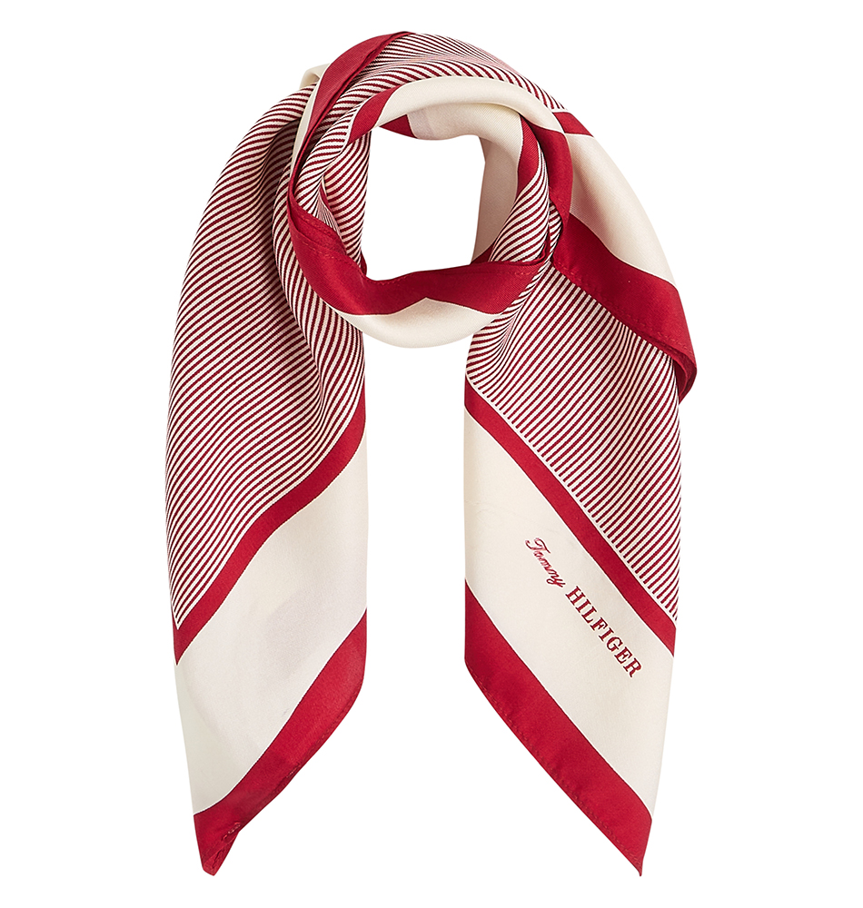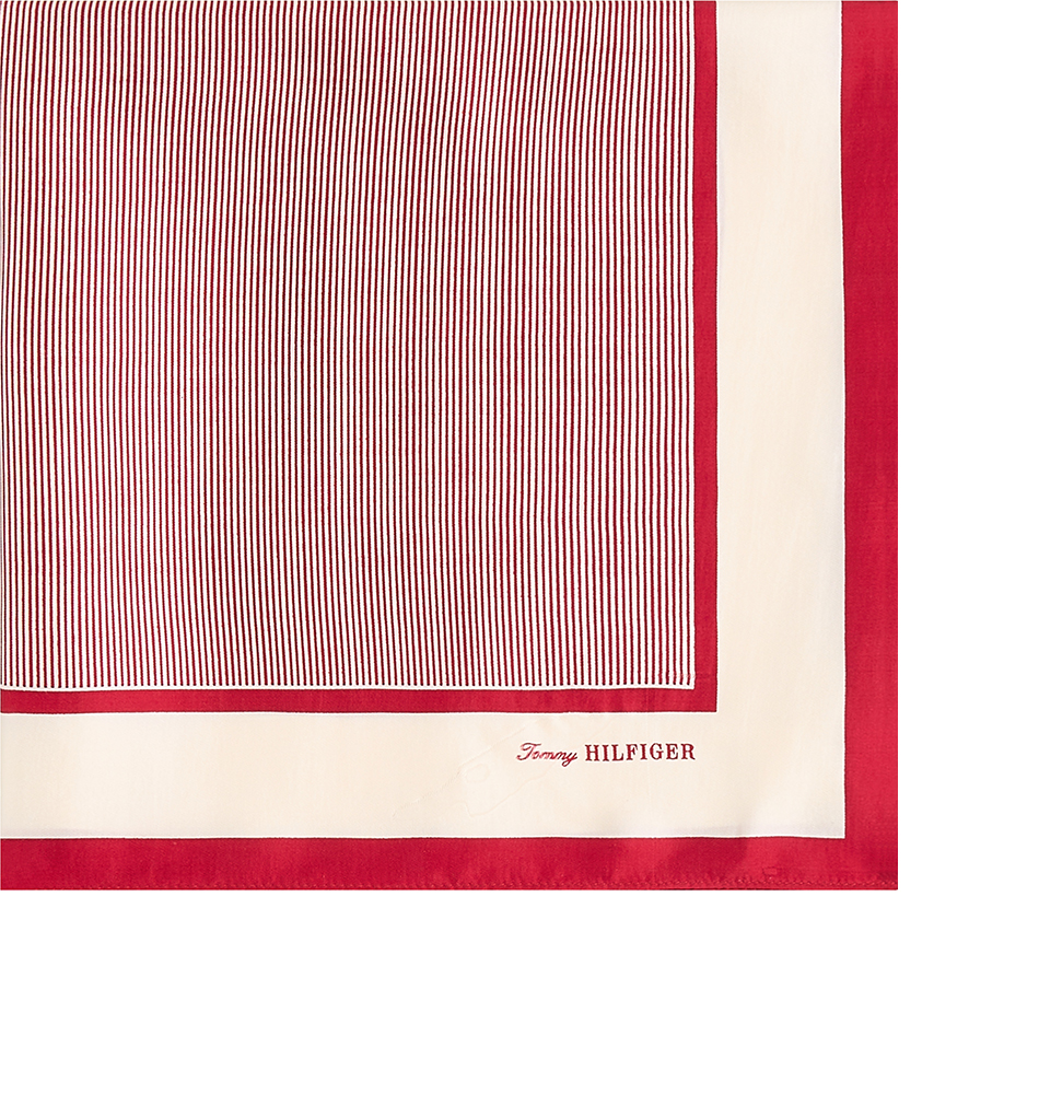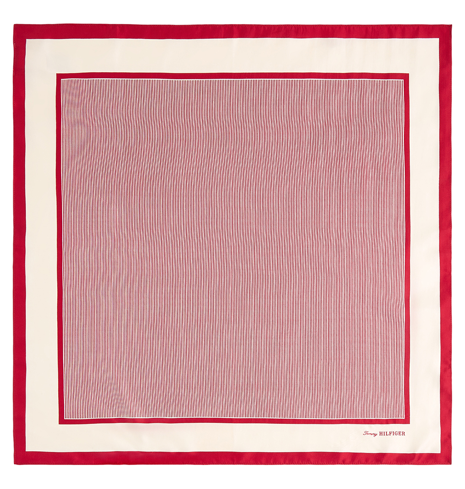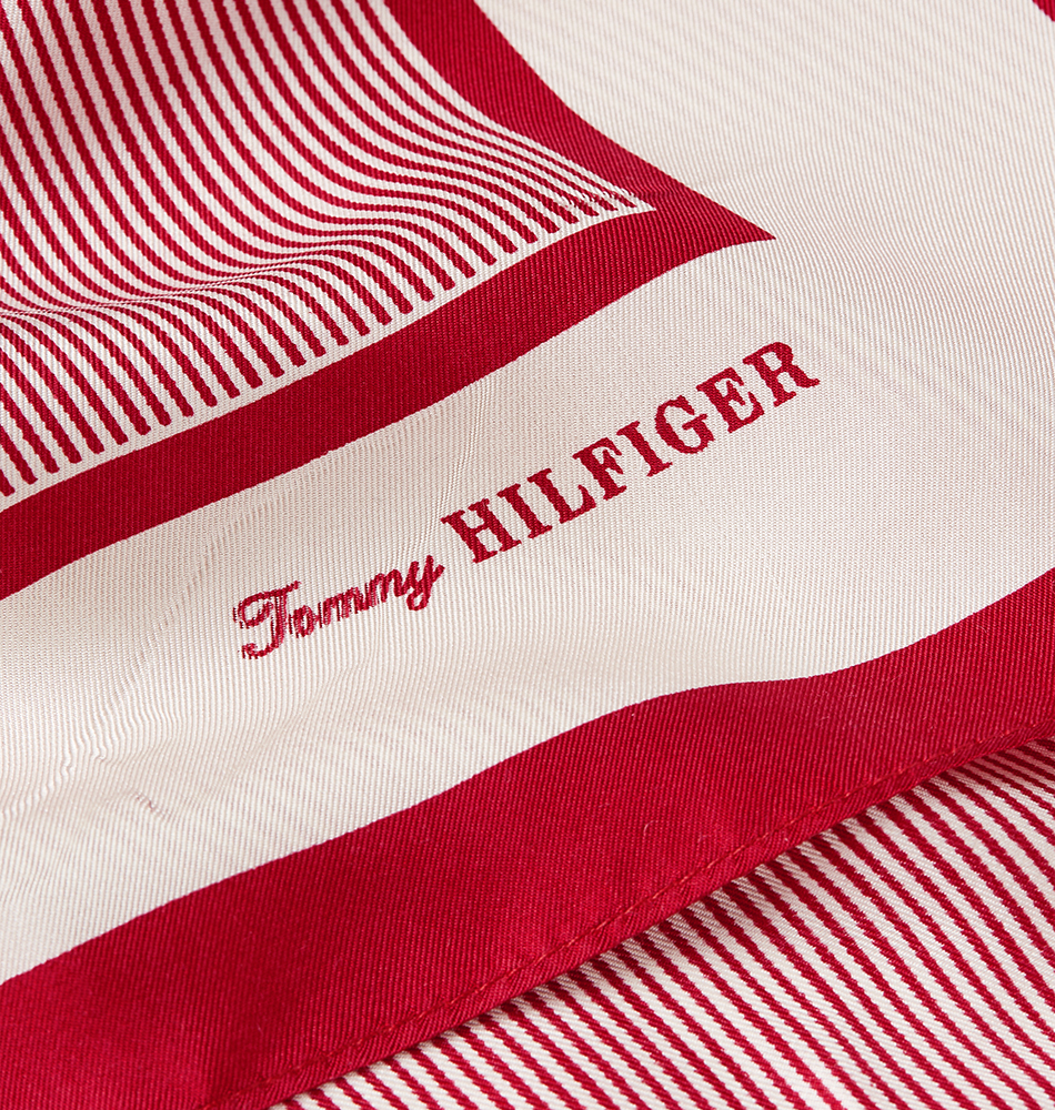 Γυναικείο φουλάρι Tommy Hilfiger TH Elevated Flag Silk Square AW0AW17629-XLD Κόκκινο. Προσθέστε μια πινελιά μοτίβου στο ντύσιμό σας με αυτό το πολυτελές τετράγωνο μαντήλι από 100% μετάξι, διακοσμημένο με διαχρονικές ρίγες.