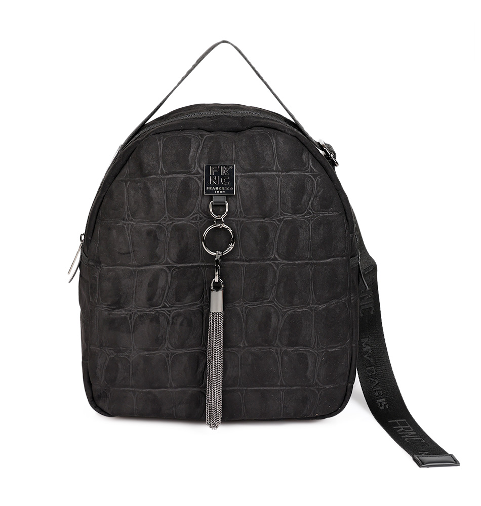 Γυναικείο σακίδιο πλάτης FRNC Eco Nubuk Croco 6133 Μαύρο. Γυναικείο σακίδιο από την νέα συλλογή της FRNC, το εκκεντρικό υλικό της και το λογότυπο την καθιστά ιδιαίτερη ενώ το μέγεθος της κατάλληλο για καθημερινή χρήση.