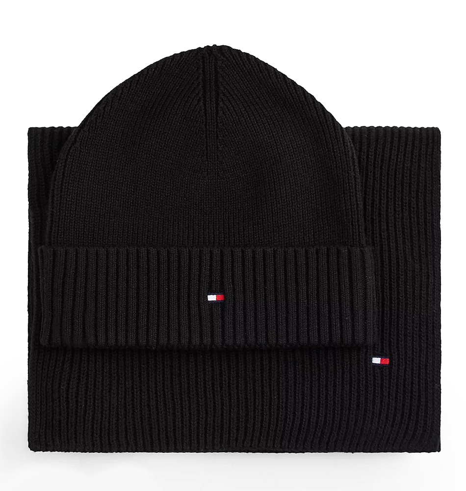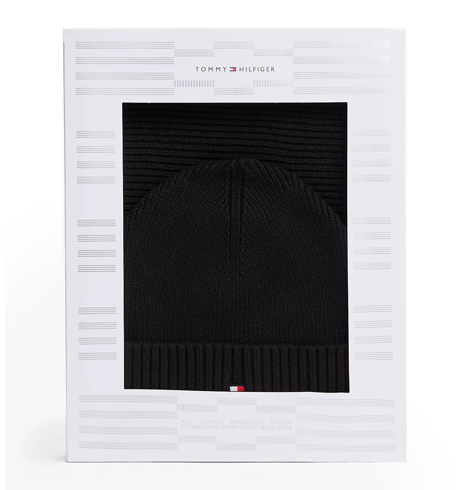 Σετ Σκούφος και Κασκόλ TOMMY HILFIGER TH Flag AM0AM13807-BDS Μαύρο. Ανδρικό σεt σκούφο με γάντια από την νέα συλλογή για τις κρύες μέρες του χειμώνα.