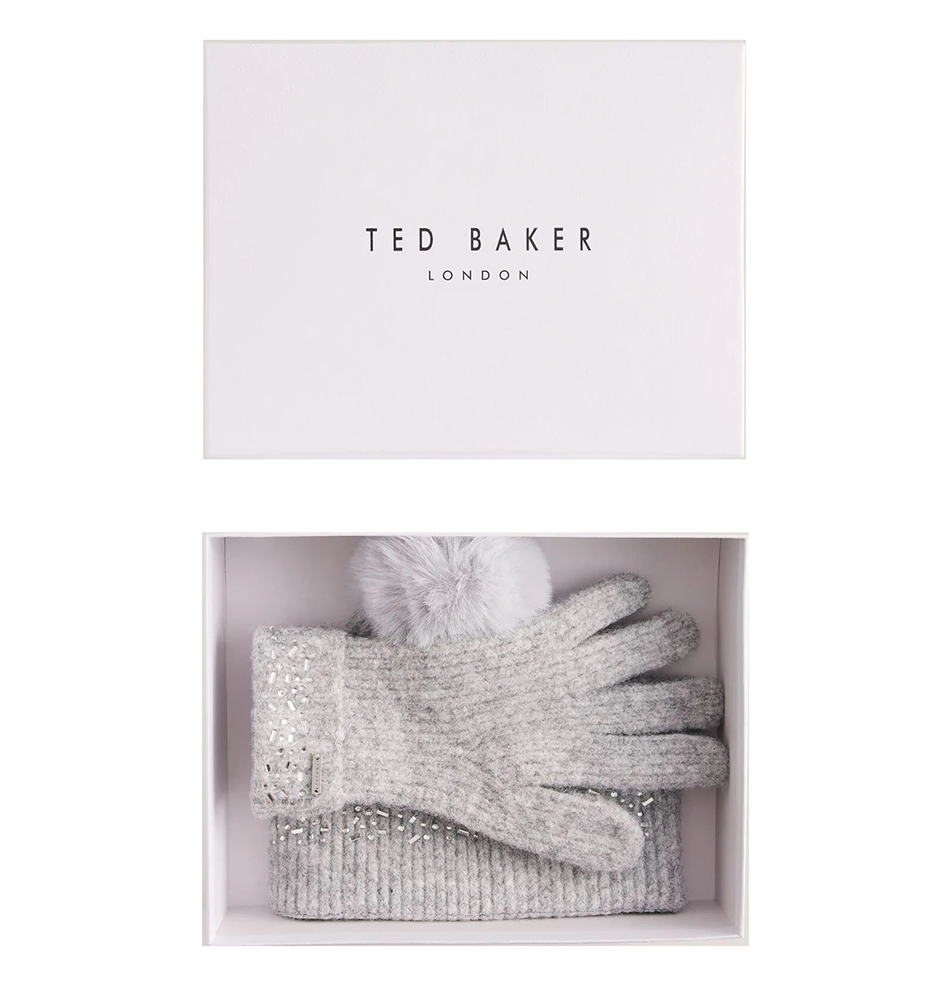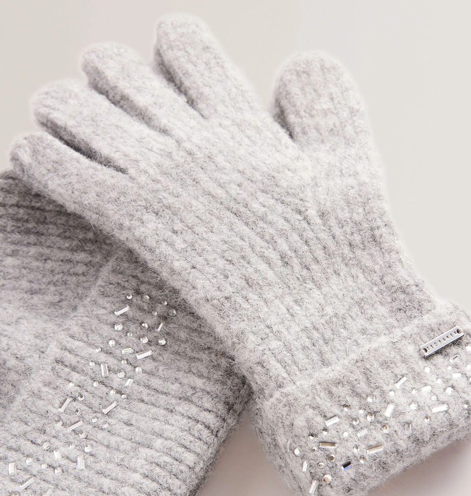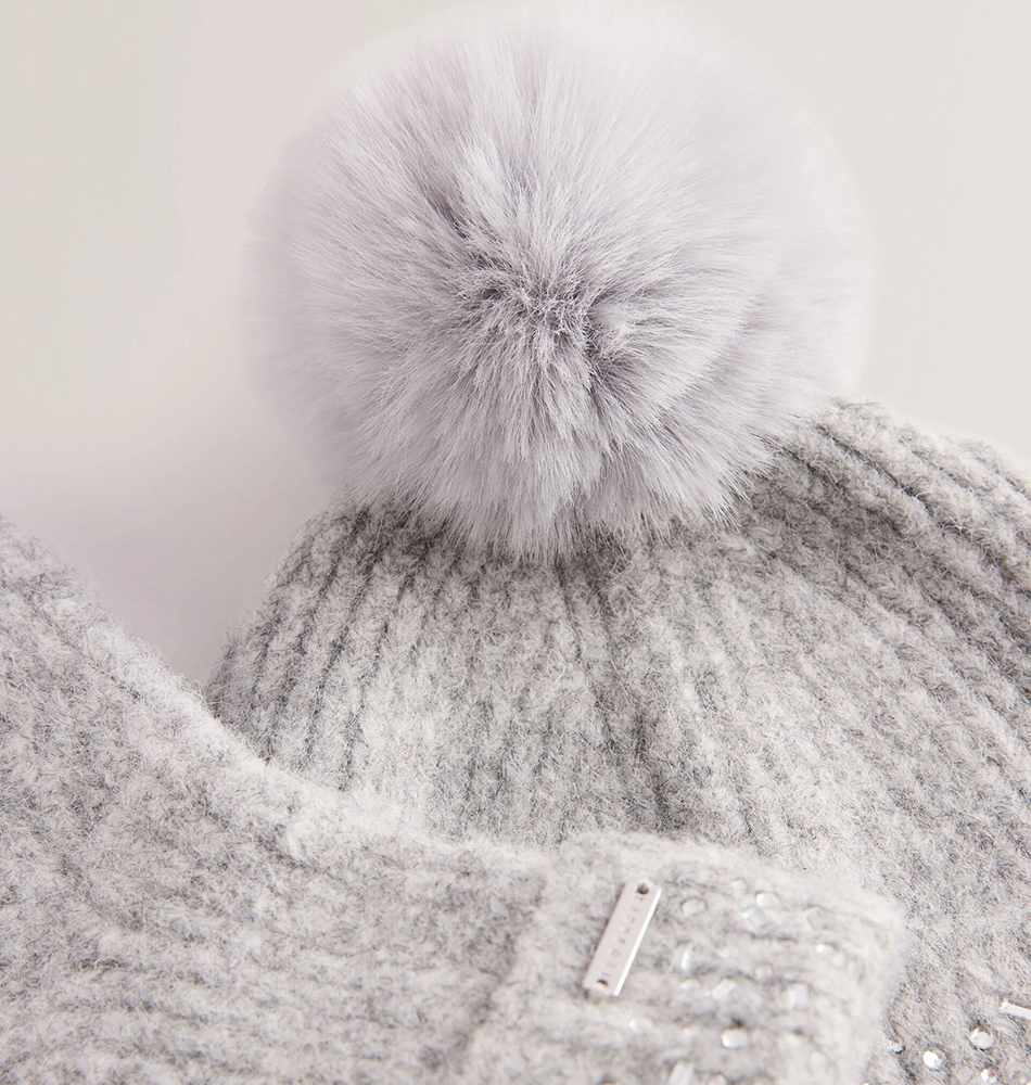 Γυναικείο σετ σκουφάκι και γάντια TED BAKER Keriis Rhinestone Knitted Hat & Gloves Set  282124-GREY Γκρι.