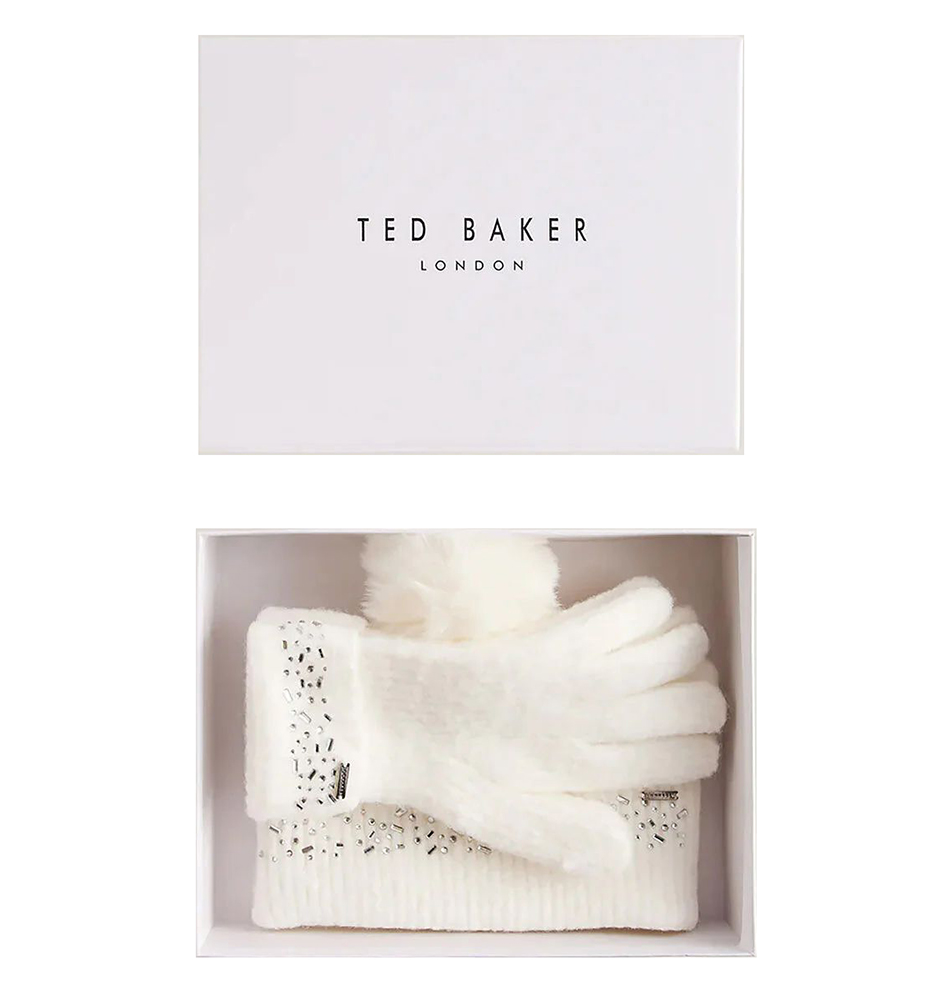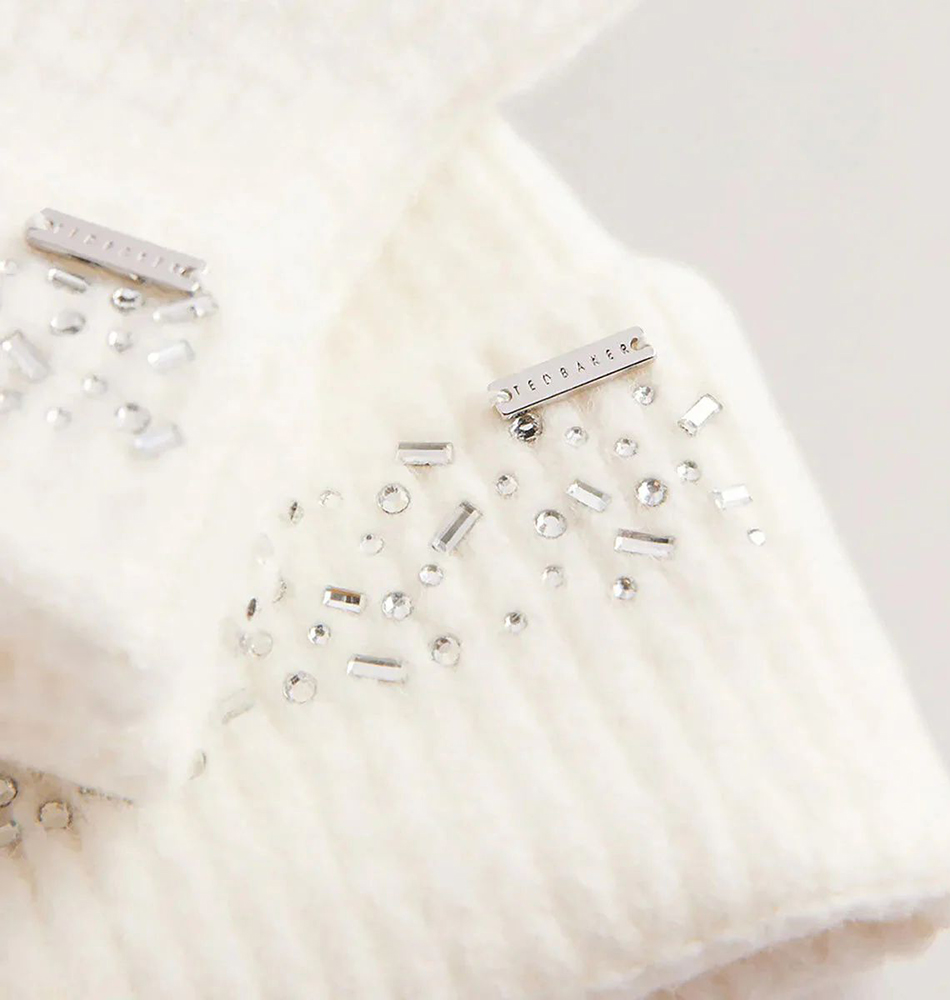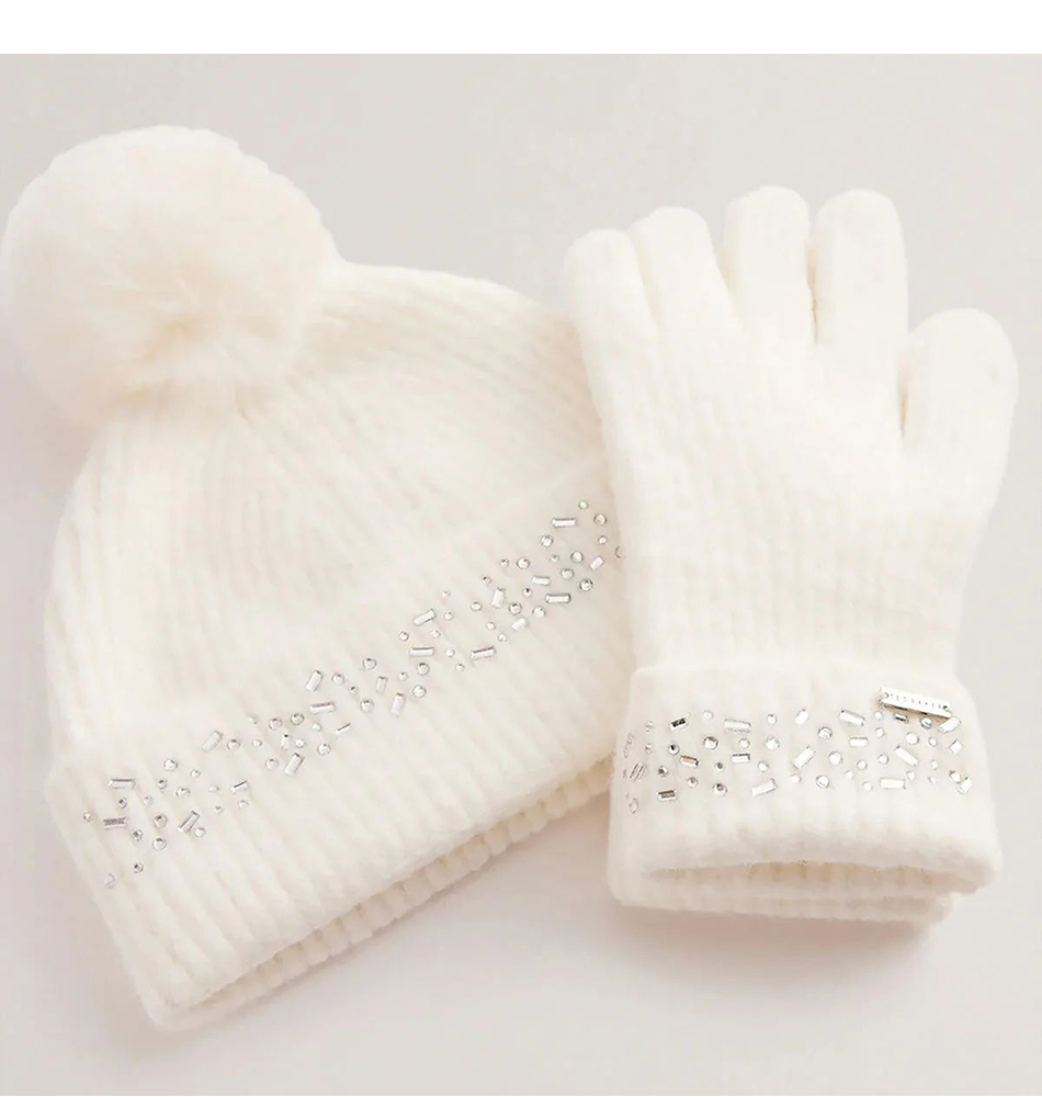 Γυναικείο σετ σκουφάκι και γάντια TED BAKER Keriis Rhinestone Knitted Hat & Gloves Set 282124-CREAM Μπεζ.