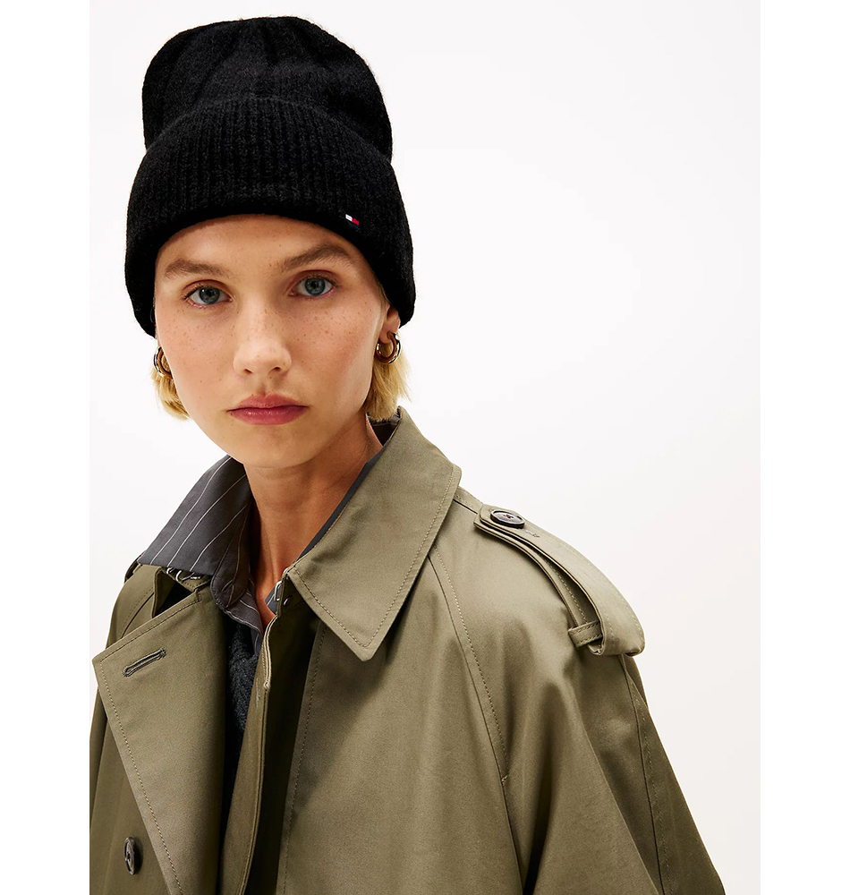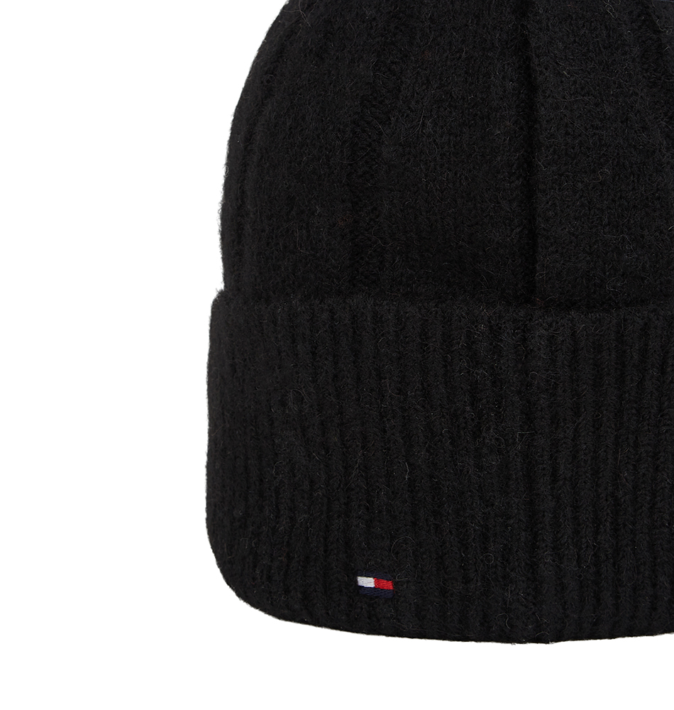 Σκουφάκι TOMMY HILFIGER TH Flag Fluffy Beanie 17779 Μαύρο