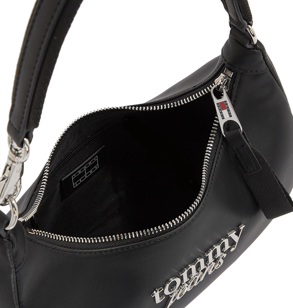 Γυναικείο τσαντάκι ώμου TOMMY HILFIGER Metal Logo Bold Script Shoulder Bag AW0AW17895-BDS Μαύρο. Αυτή η τσάντα ώμου διαθέτει εκλεπτυσμένο, λείο φινίρισμα και αναδεικνύεται από το μεταλλικό λογότυπο serif script στο μπροστινό μέρος.