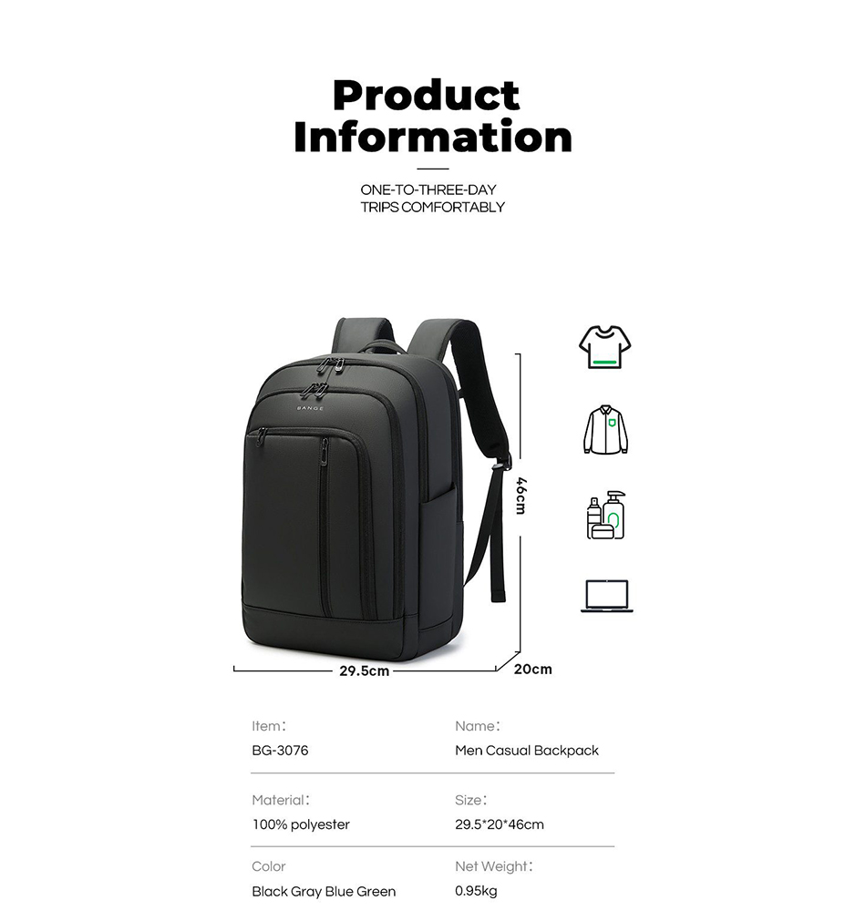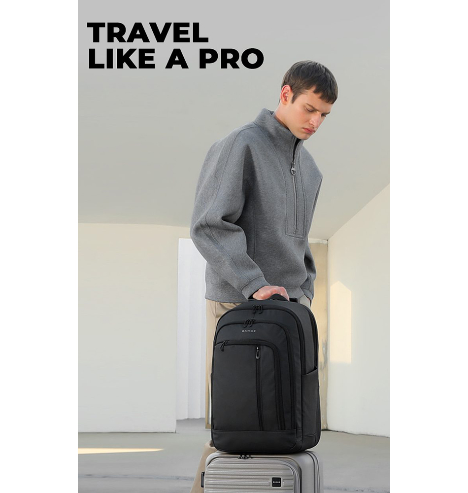 Ανδρικό ευρύχωρο και πρακτικό σακίδιο πλάτης bussiness Laptop BANGE 27lt Backpack Laptop 15.6" 3076-BLACK Μαύρο